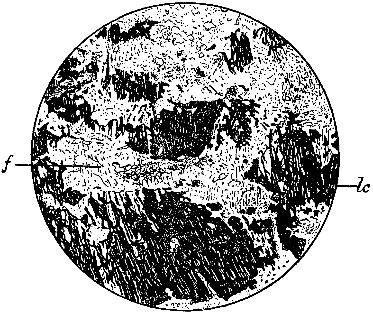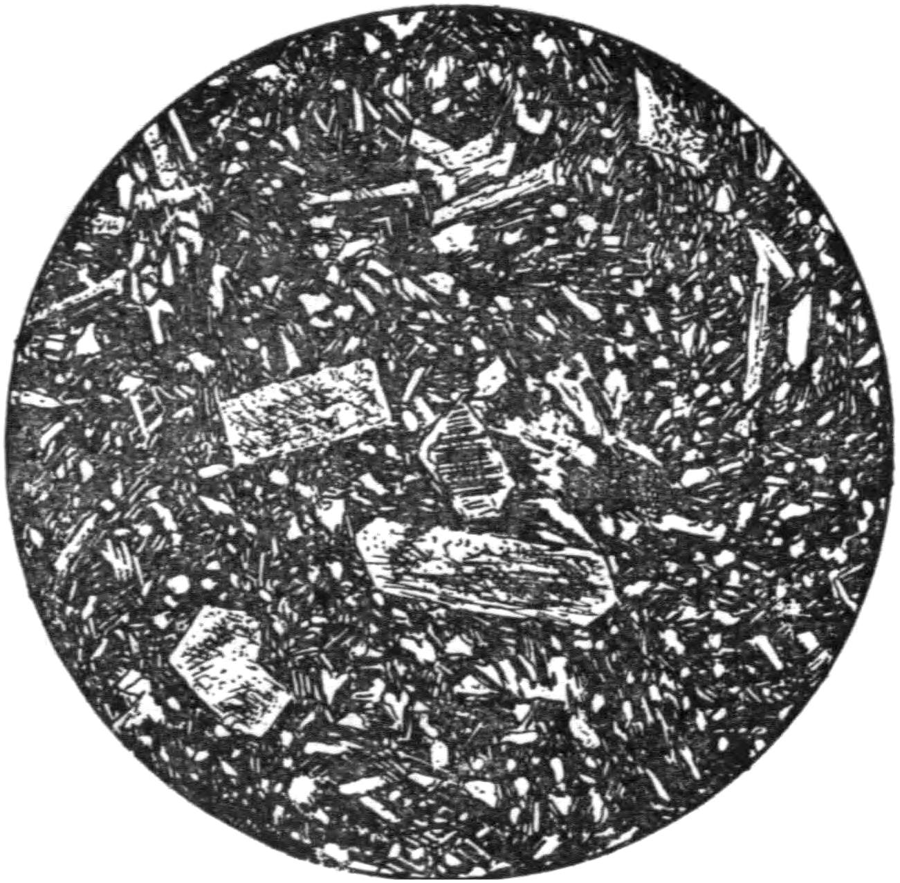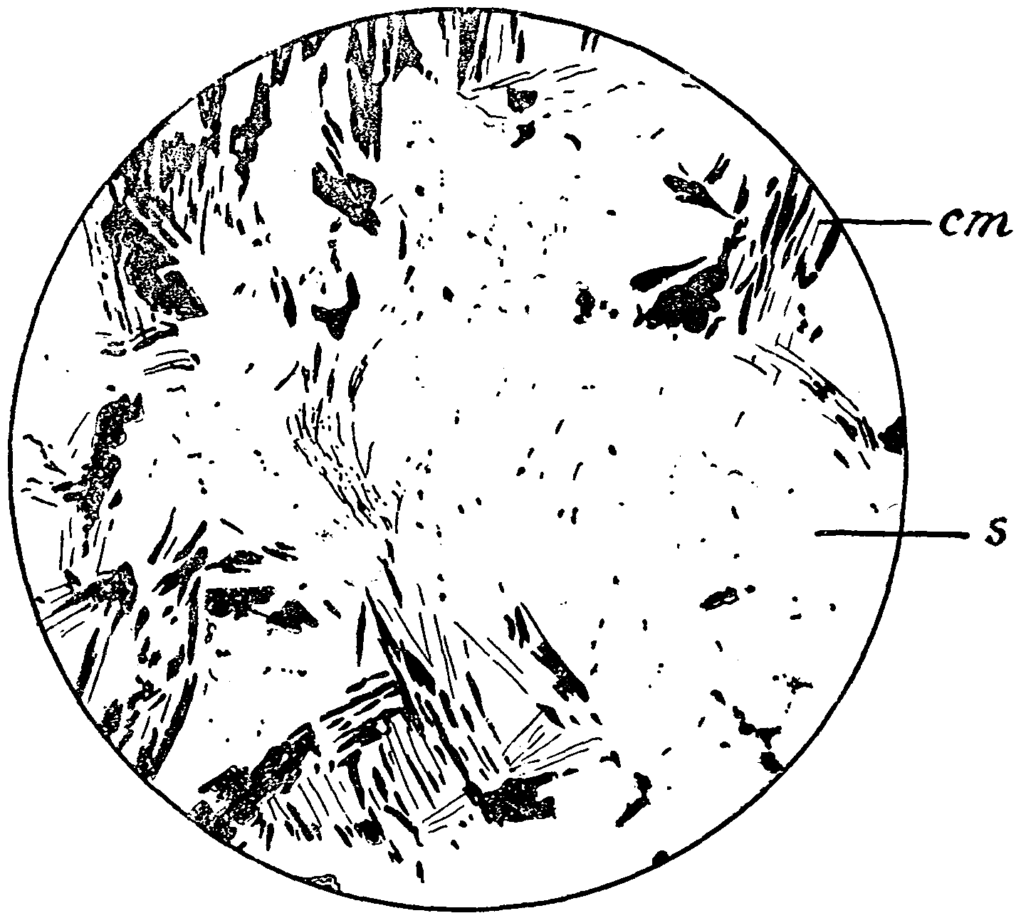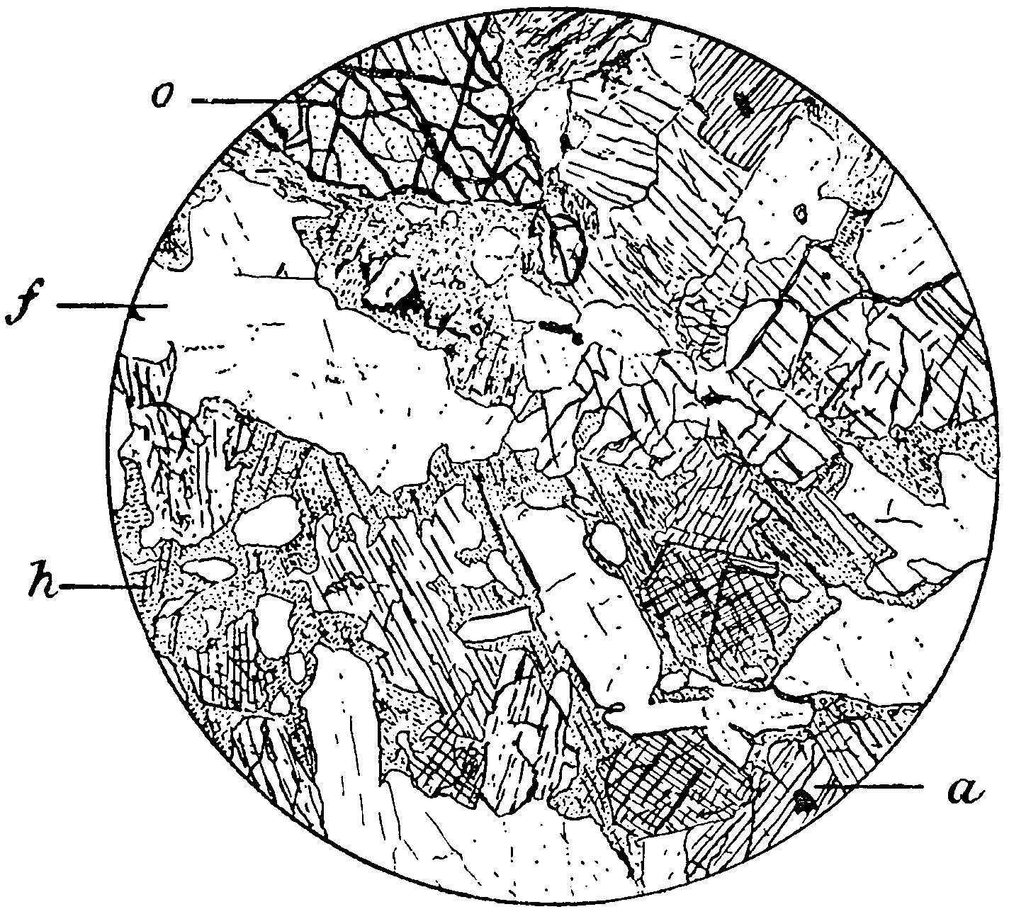 The plates illustrating the scenic types are from my own photographs, while those illustrating the natural-size aspect of the typical[vii] rocks are reproductions from water-colour drawings which I made from actual specimens. These coloured plates of rocks are mainly designed to enable prospectors to identify readily the ordinary kinds of stone they meet with in the field; but they will also serve to give to petrologists an idea of the appearance of hand specimens of rocks from this part of the world, which are not frequently met with in the great museums. The text figures of rock sections I have mostly drawn at the microscope on silver prints from photographic plates, the prints being afterwards bleached out with mercuric chloride; they will appear slightly diagrammatic in places, owing to the necessity of using lines and dots for tints, but I find I myself get a better idea of a rock from a drawing of this kind than from a photograph.