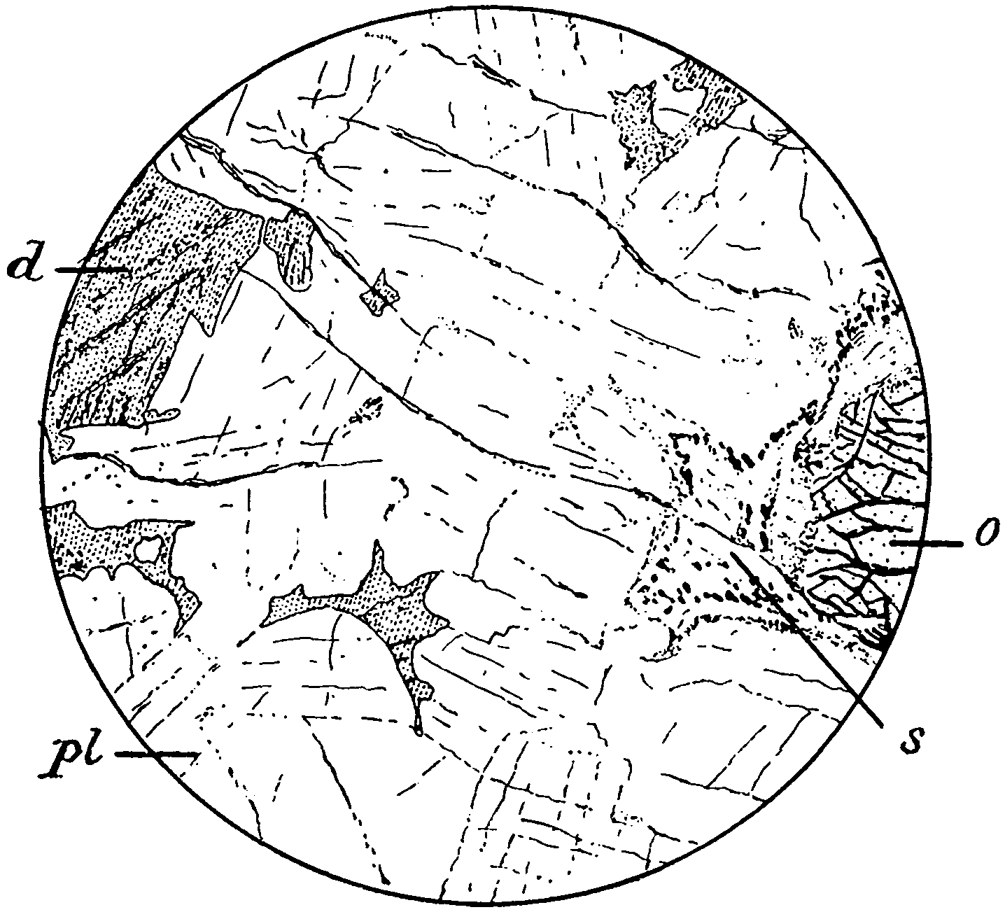 - pg 300 (caption of PLATE XXIV.) Changed: FINE-QRAINED GABBRO to: FINE-GRAINED