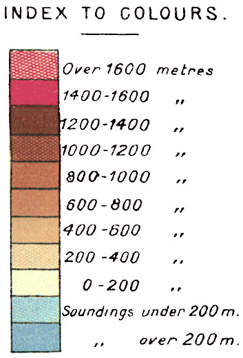 The third chapter is an account of the surveying methods employed and the principal geographical results obtained. The surveying methods are treated at some length, firstly because an adequate specification of the survey methods used is necessary for the assessment of the value of any contribution to modern geography, and, secondly, because some of the methods are either new or little known, and have been found by experience to be specially adapted to the mapping of this type of country. The principal geographical results are given, mostly in tabular form, as exhibiting clearly the groundwork of the actual maps, and as indicating a series of adequately fixed positions which may be employed as a basis in any further surveys.