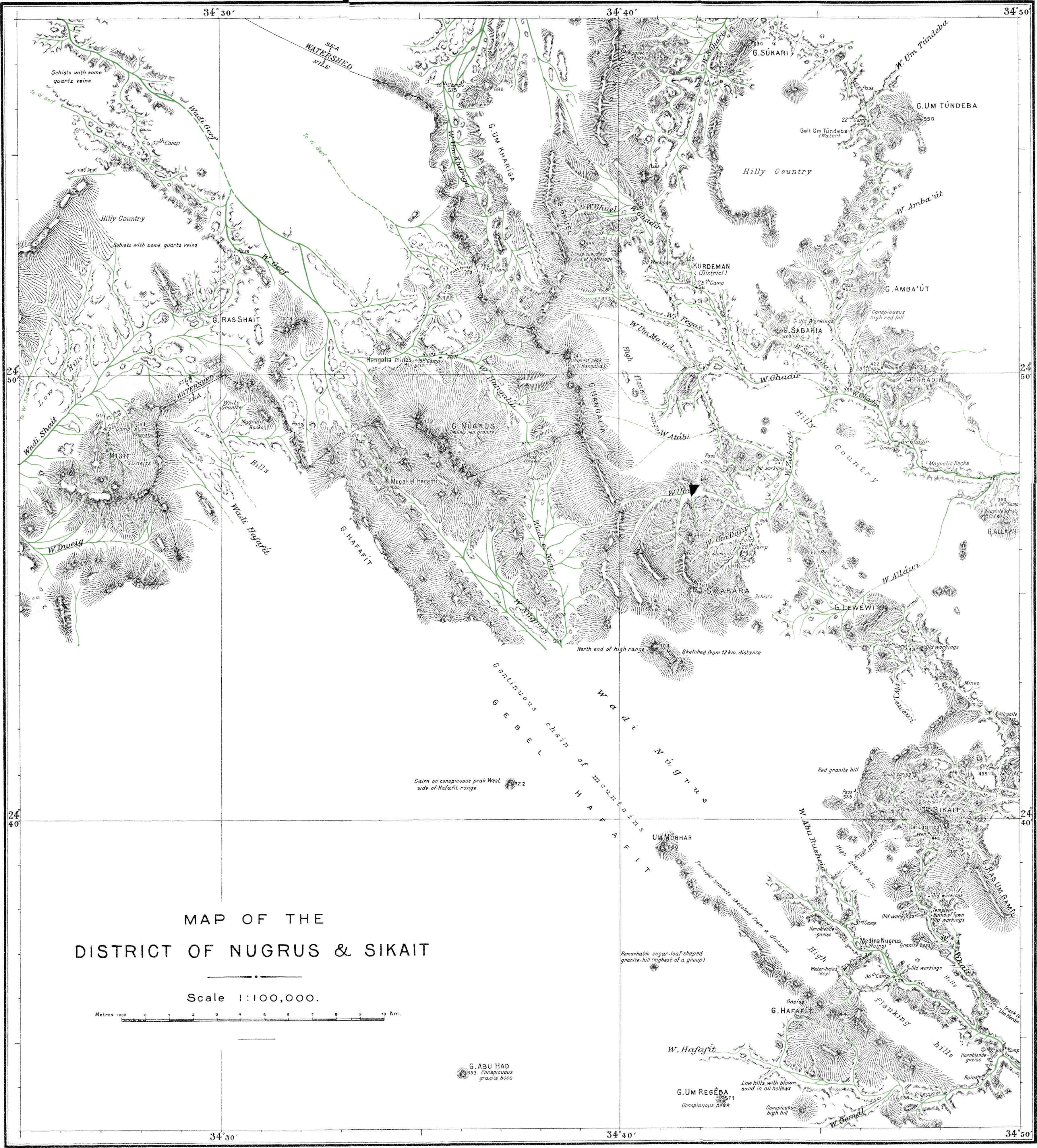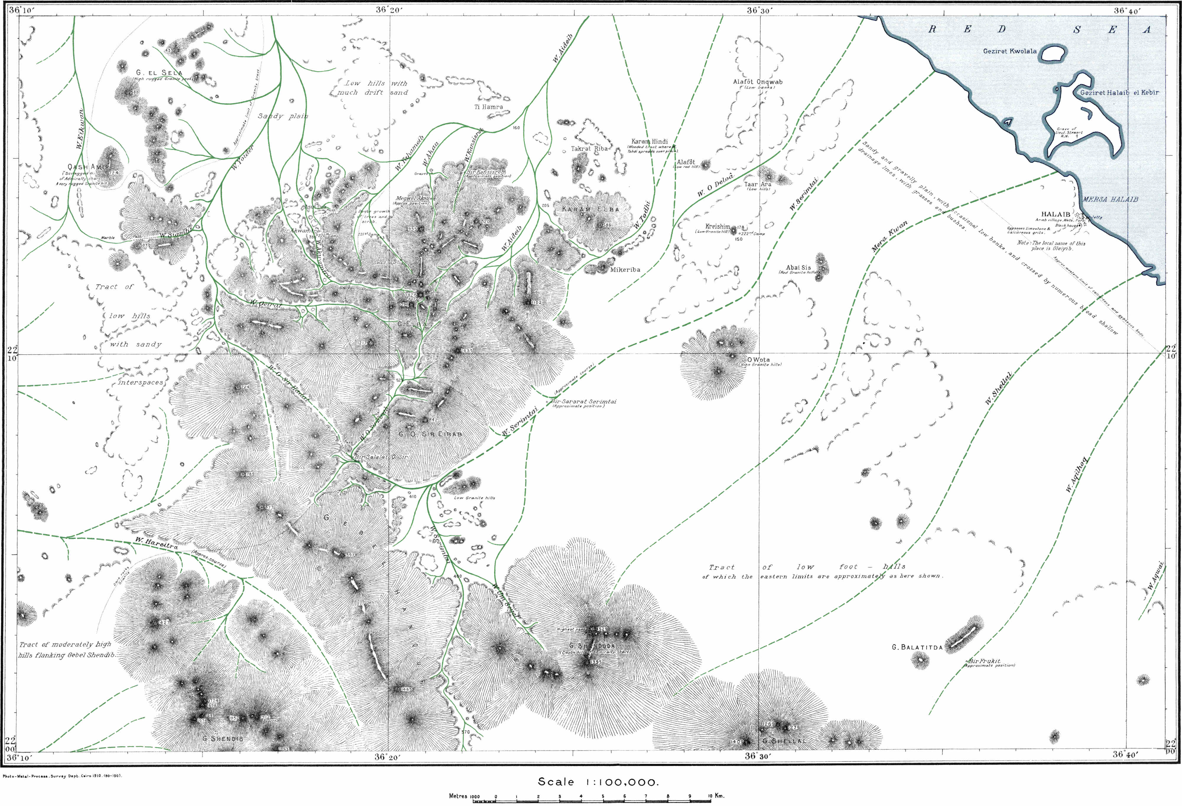 Much detailed surveying of this mountainous and arid region remains yet to be done, especially in the districts round the heads of the Wadi Alaqi, before our knowledge of it can be considered complete. It is hoped, however, that a substantial beginning has been made towards this end, and that future work may be facilitated by the observational data recorded in the following pages.
