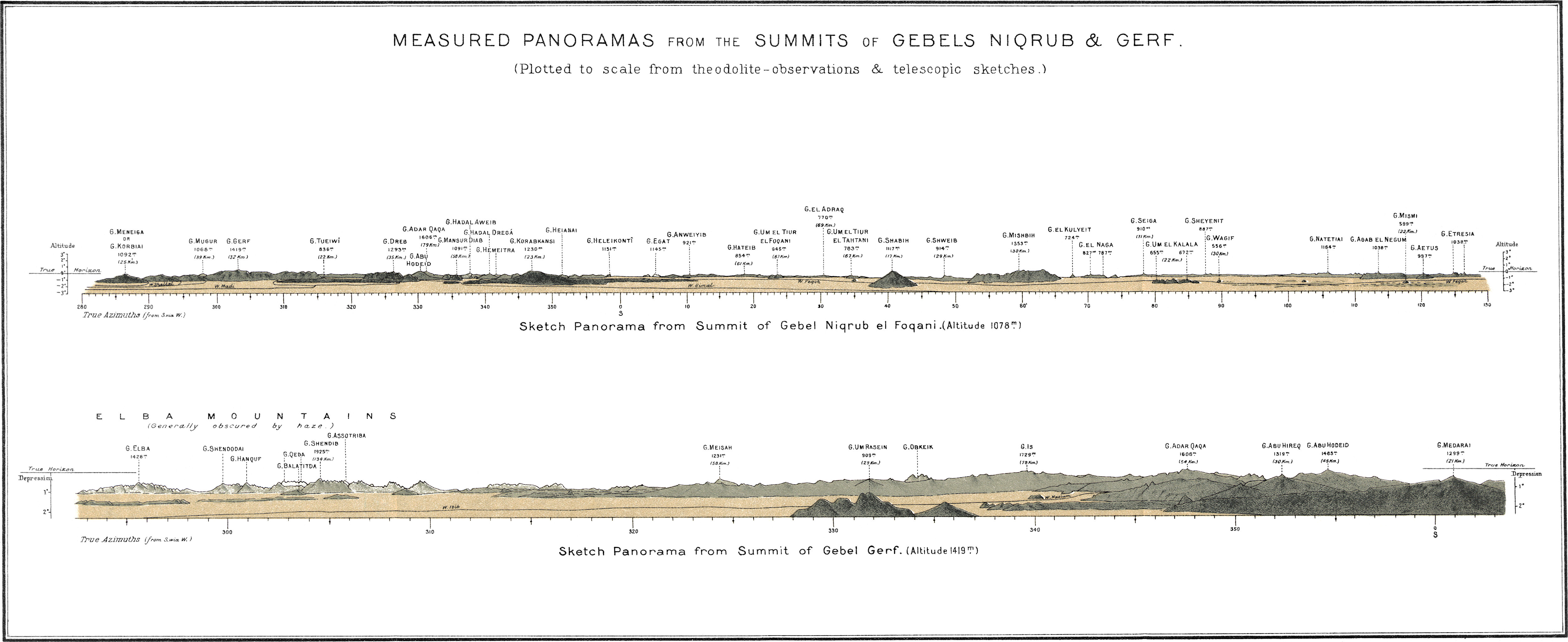 | XVI. — | Panoramas from the Summits of Gebels Niqrub and Gerf | 206 | |