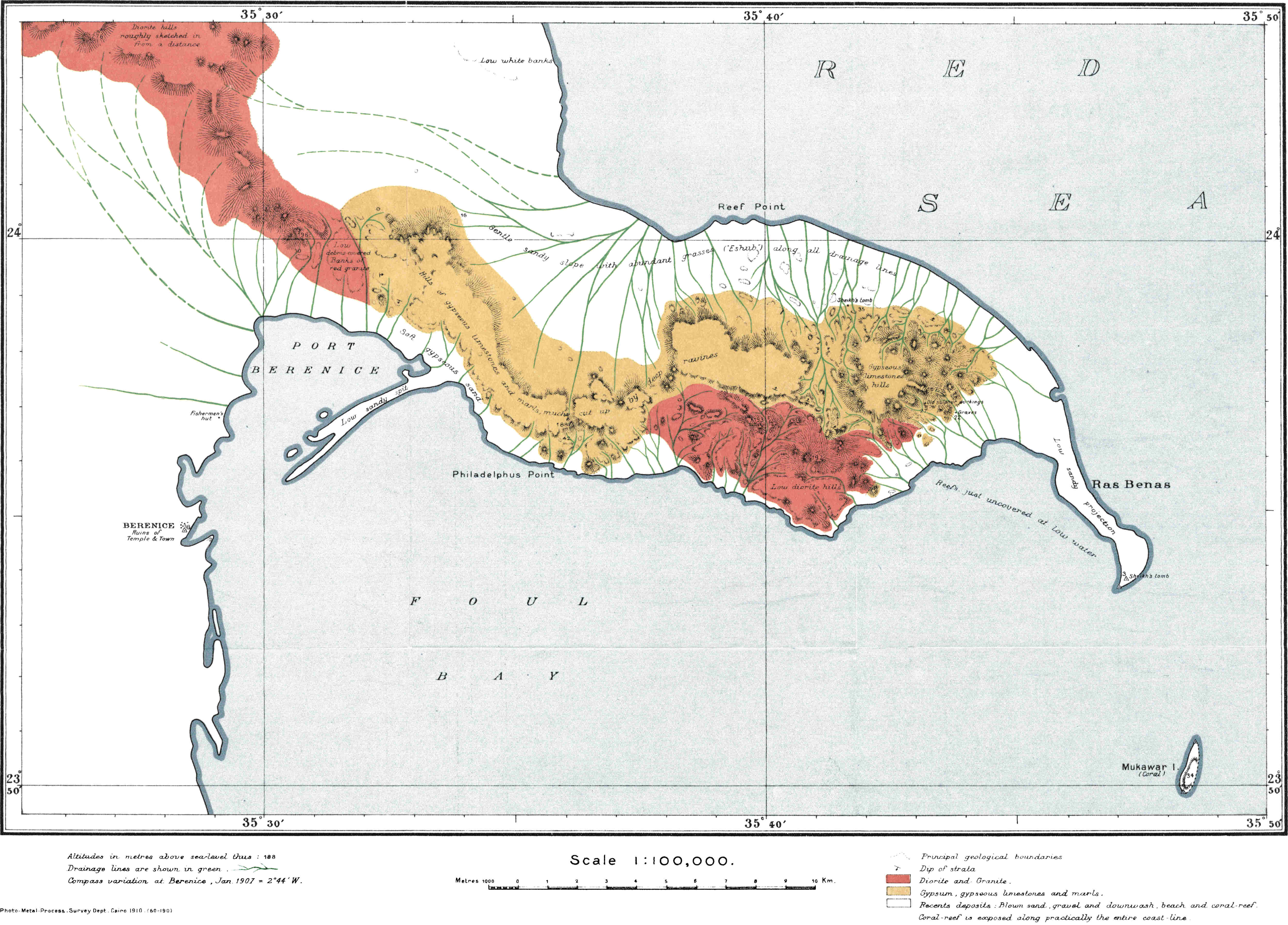 The eighth to tenth chapters deal with the various rocks occurring in the district. The petrology of the region has been discussed with some fulness, because while the district offers a remarkable wealth of rock-species, well exposed in considerable masses, detailed studies of Egyptian petrology have hitherto been few. My great regret in this connexion is that I have been unable to add chemical analyses of the rocks.