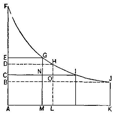 [2] The term final utility is used with much the same significance as specific importance. It is the utility of the last and least important part of the supply, and the use of the term requires us to think of the supply as offered to users unit by unit till the whole amount is in their hands. The first unit, when it stands alone, is more important than any later one will be. The second is of less consequence, and the last is the least important of all. When, however, all have been supplied and are together available for use, one is as important as another. Each one has an effective utility which is measured by the service rendered by the last one. The term specific indicates that we measure the importance of the supply of an article not in its entirety, but bit by bit, while the term effective is the antithesis of absolute and means that each bit of the supply not only renders an absolute service, but renders one which would not be gratuitously rendered by some other part of the supply in case this portion were removed or destroyed. We do not here think of the supply as built up from nothing to its present size bit by bit, but look at it as it stands and measure the importance of any particular quantity. When we speak of final utility, we think of a series of "increments" supplied one after another, and in this case the successive increments become less and less important, since, after some have been supplied, the want of the kind of good that they represent is less keenly felt. The conception of the series of units is merely a means of isolating one unit from a total number and obtaining a mental measurement of its importance which corresponds with the effective importance of any unit in the entire quantity.