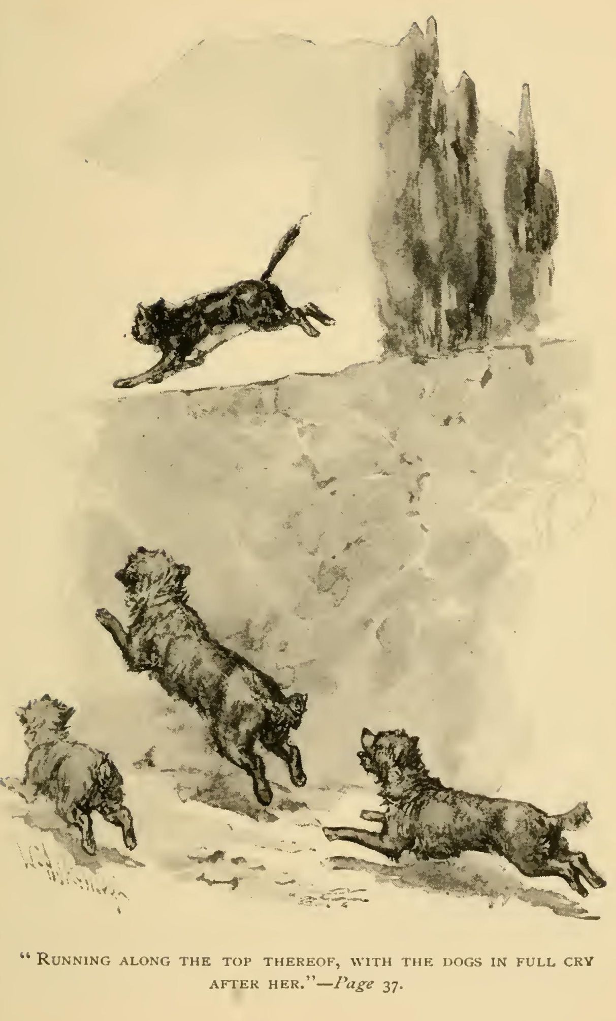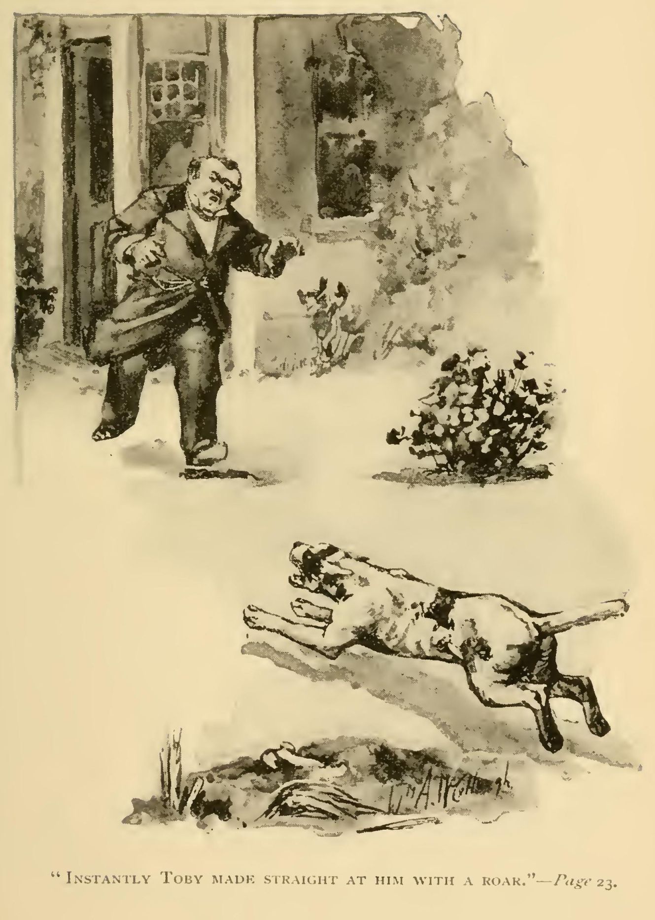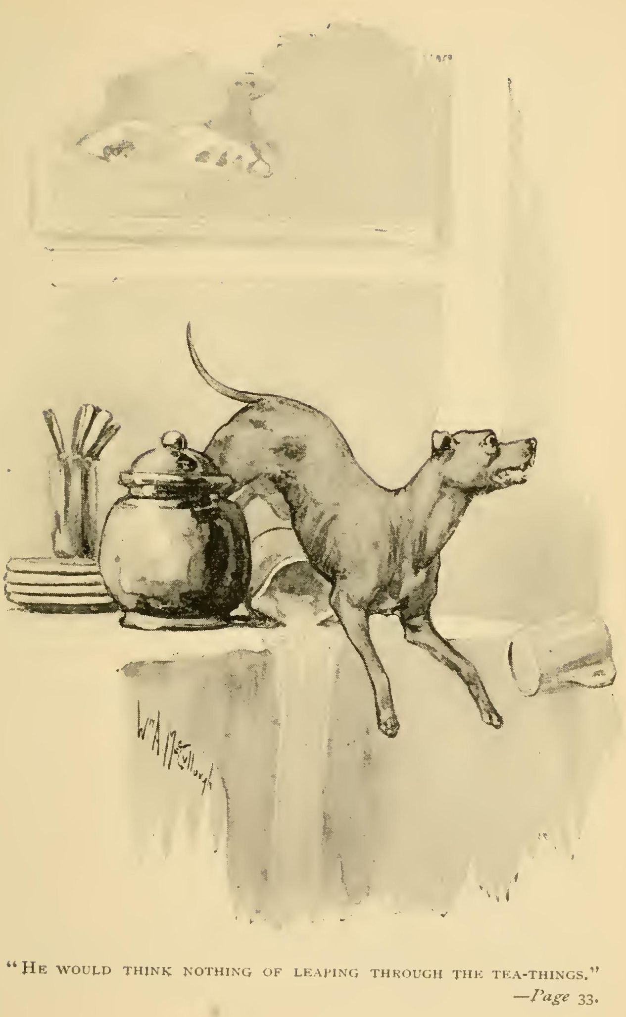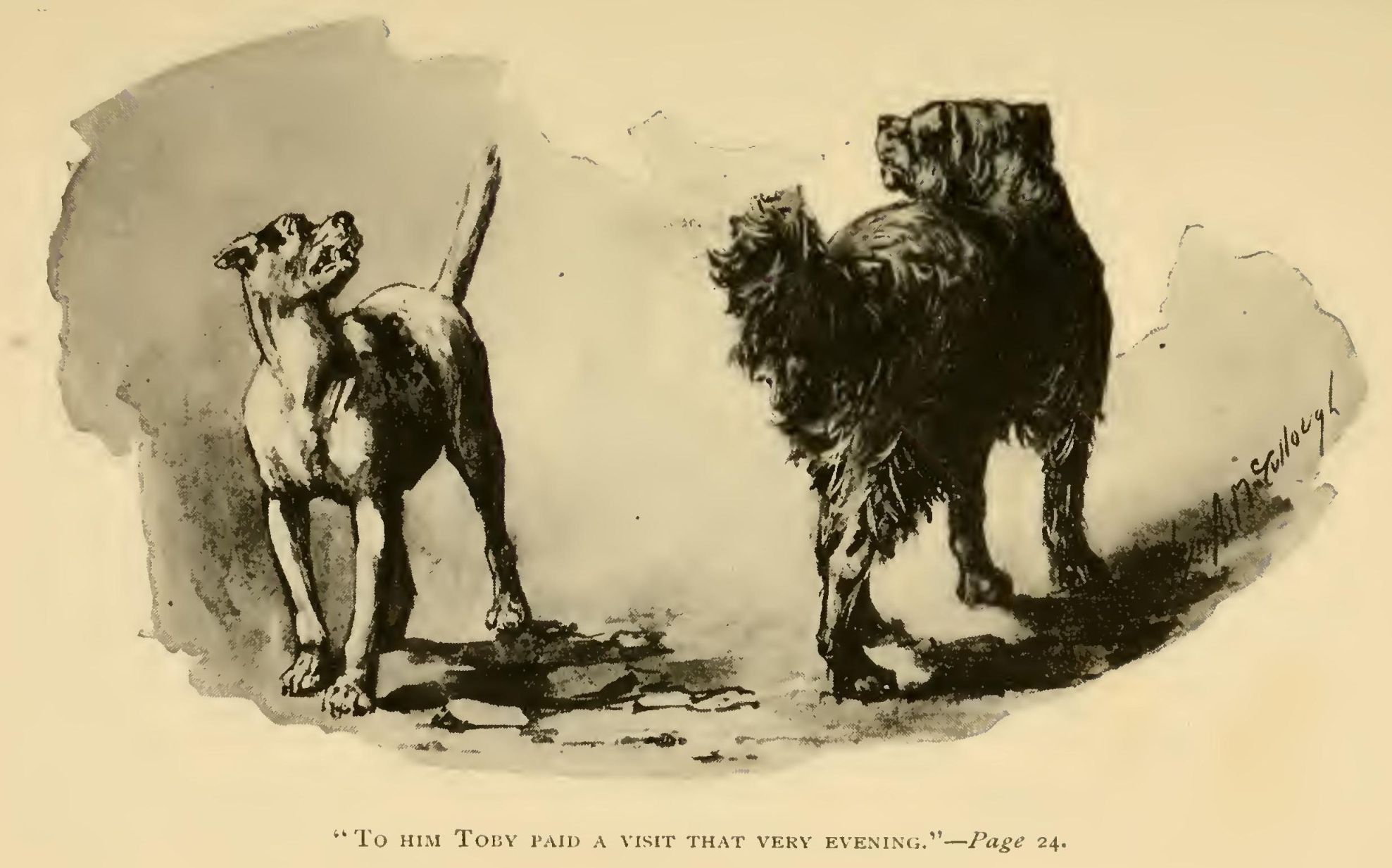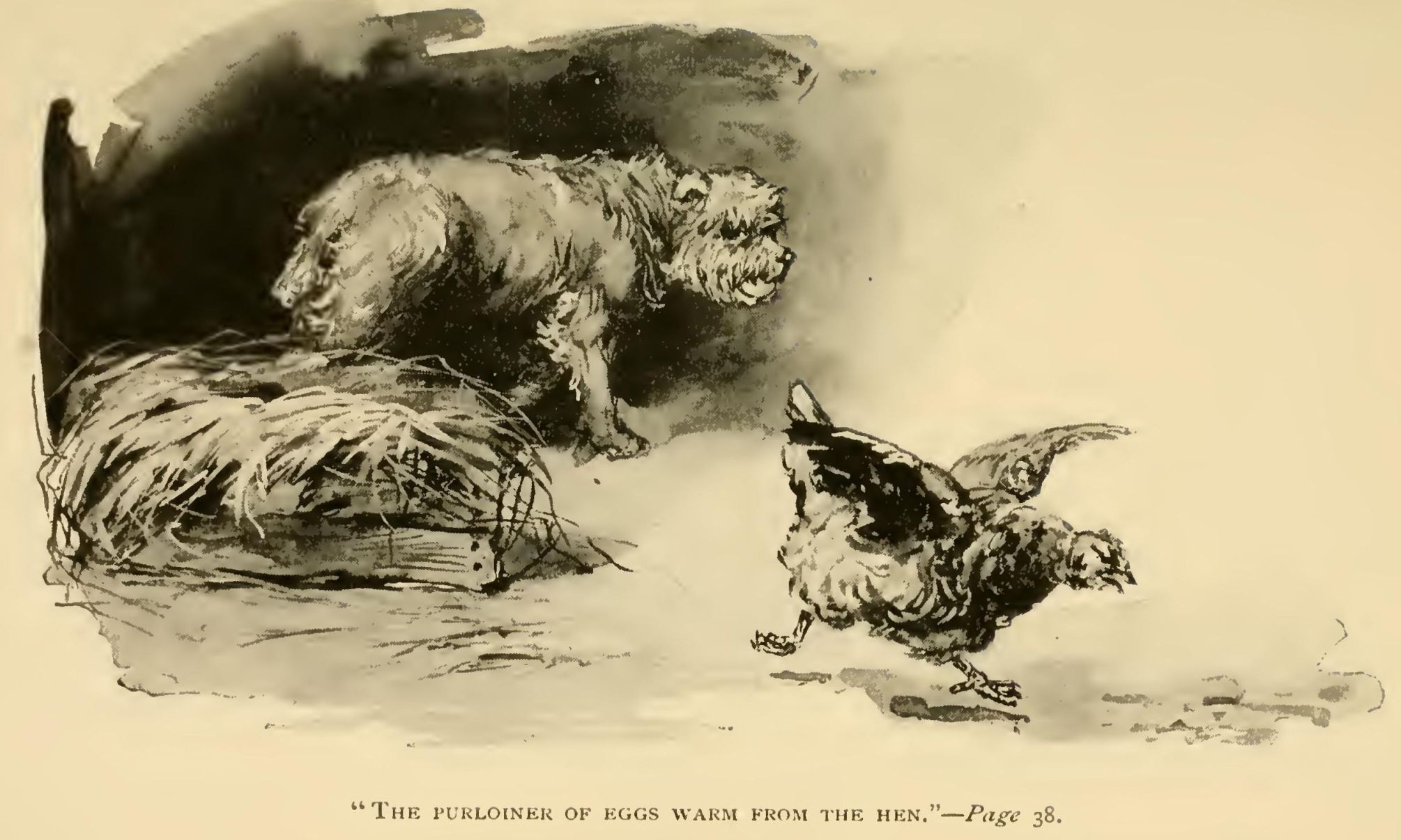 But the Bull Terrier's blood is up, and his soul unsatisfied; he grips the first dog he meets, and discovering she is not a dog, in Homeric phrase, he makes a brief sort of amende, and is off. The boys, with Bob and me at their head, are after him: down Niddry Street he goes, bent on mischief; up the Cowgate like an arrow—Bob and I, and our small men, panting behind.