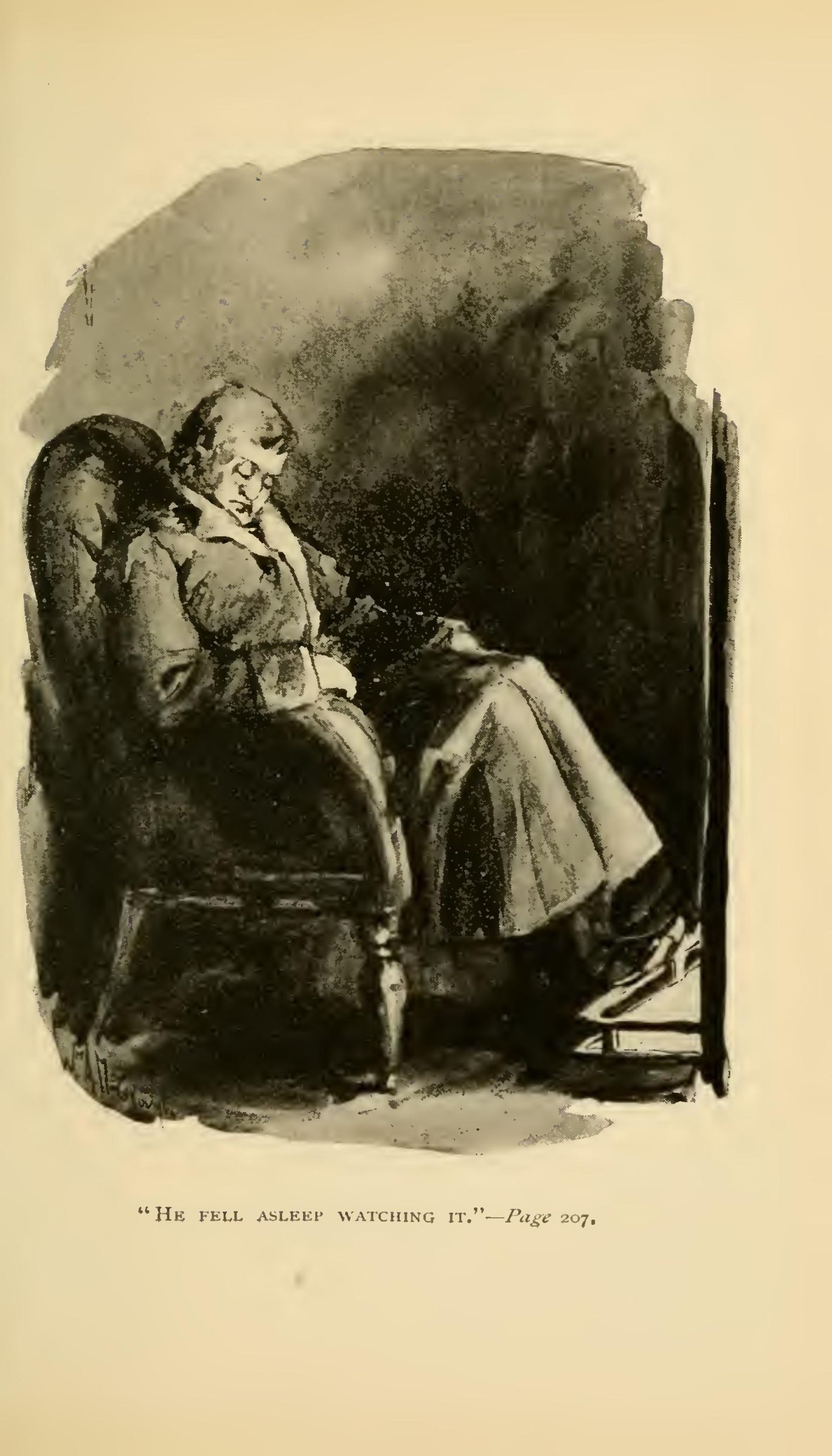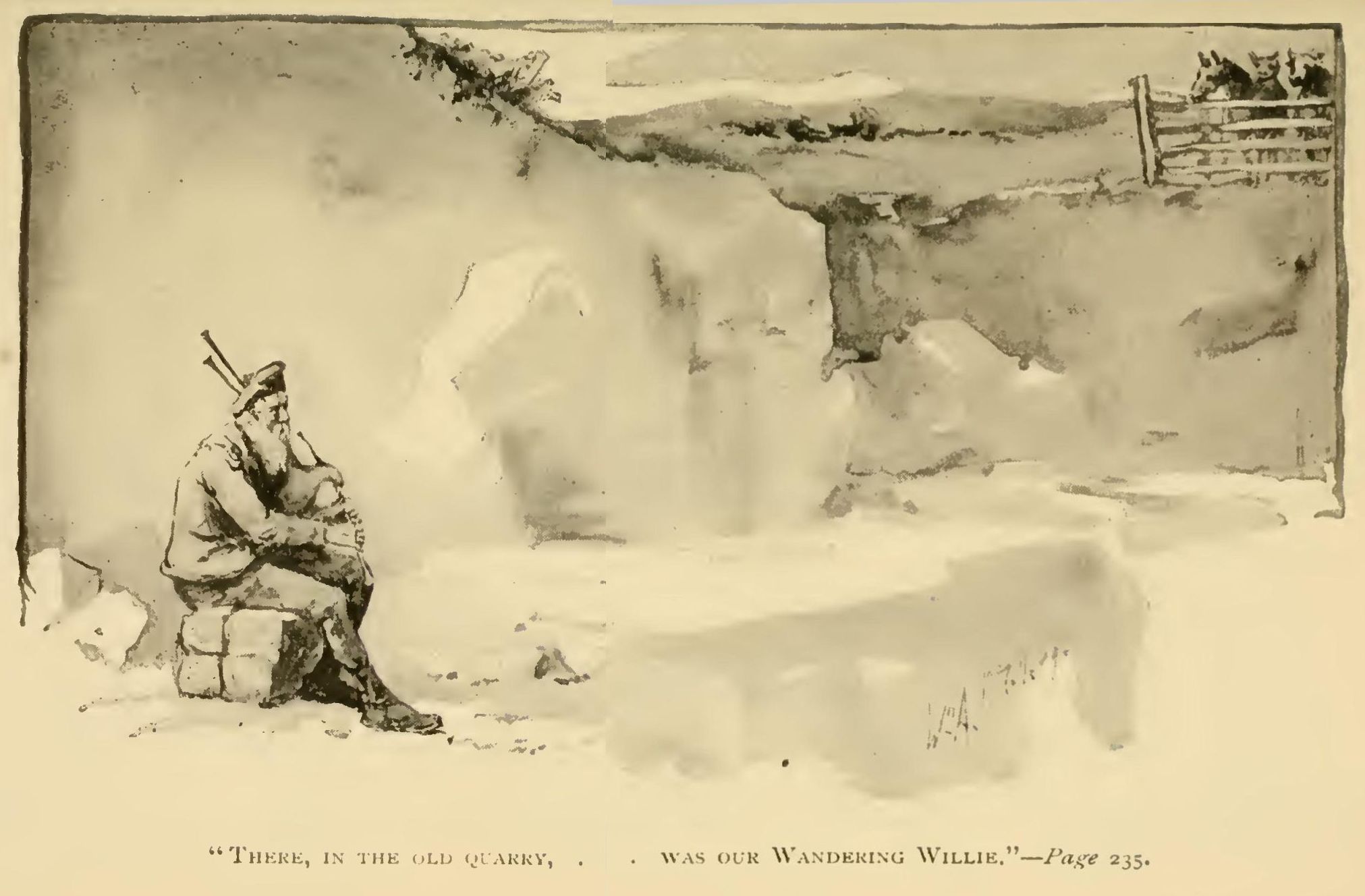 It is over; she is dressed, steps gently and decently down from the table, looks for James; then turning to the surgeon and the students, she curtsies,—and in a low, clear voice, begs their pardon if she has behaved ill. The students—all of us—wept like children; the surgeon happed her up carefully,—and, resting on James and me, Ailie went to her room, Rab following. We put her to bed. James took off his heavy shoes, crammed with tackets, heel-capt and toe-capt, and put them carefully under the table, saying, "Maister John, I'm for nane o' yer strynge nurse bodies for Ailie. I'll be her nurse, and I'll gang aboot on my stockin' soles as canny as pussy." And so he did; and handy and clever, and swift and tender as any woman, was that horny-handed, snell, peremptory little man. Everything she got he gave her: he seldom slept; and often I saw his small shrewd eyes out of the darkness, fixed on her. As before, they spoke little.
