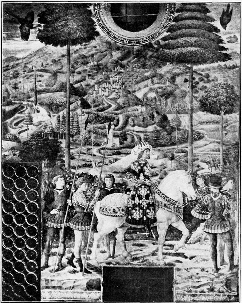 II.—BENOZZO GOZZOLI, Adoration of Kings (detail). Riccardi Palace, Florence.