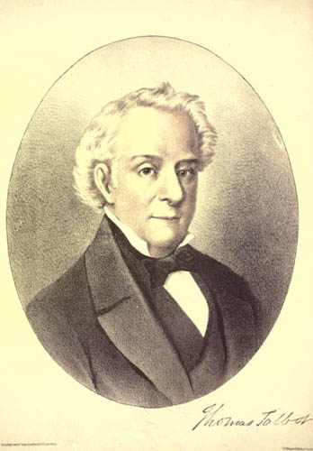 Among the earliest settlers in the Talbot District was Mr. Mahlon Burwell, a land surveyor, who was afterwards better known as Colonel Burwell. He was of great assistance to Colonel Talbot, and became a privileged guest at Castle Malahide. He surveyed many of the townships in the Talbot District, and later on rose to a position of great influence in the Province. His industry and perseverance long enabled him to hold a high place in the minds of the people of the settlement, and he enjoyed the reflection of Colonel Talbot's high and benevolent character. He entered the Provincial Parliament, and for many years retained a large measure of public confidence. Another early settler in the District was the afterwards celebrated Dr. John Rolph, who took up his quarters on Catfish Creek in 1813. He was long on terms of close intimacy and friendship with Colonel Talbot, and in 1817 originated the Talbot Anniversary, to commemorate the establishment of the District, and to do honour to its Founder. This anniversary was held on the 21st of May, the Colonel's birthday, and was kept up without interruption for about twenty years. It was attended by every settler who could possibly get to the place of celebration, which was sometimes at Port Talbot, but more frequently at St. Thomas, after that place came into existence. Once only it was held at London. It is perhaps worth while mentioning that St. Thomas was called in honour of the Colonel's Christian name. Here the rustics assembled in full force to drink bumpers to the health of the Founder of the settlement, and to celebrate "the day,[Pg 35] and all who honour it." The Colonel, of course, never failed to appear, and even after he had passed the allotted age of three score and ten, he always led off the first dance with some blooming maiden of the settlement.
