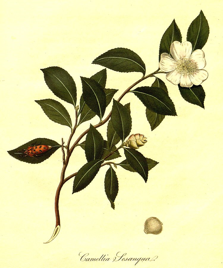 [61] Two specimens of this plant are now in the physic garden at Upsal. About the year 1755, they were brought over from China by M. Lagerstrom, a director of the Swedish East-India Company, under the supposition of being Tea-plants, till they appeared in blossom, when they proved to be this species of Tsubakki, called by Linnæus, Camellia. Spec. Plant, p. 982. This celebrated Naturalist says, “That the leaves of his Camellia are so like the true Tea, that they would deceive the most skilful botanist; the only difference is, that they are a little broader.” Amœnit. Academ. Vol. VII. p. 251. See also Ellis’s Directions for bringing over foreign Plants, p. 28. A Camellia was brought in 1771 from China in good health; the leaves of this shrub end in a double obtuse point (obtusely emarginated) like those of the Tea tree, which makes them still more liable to be mistaken for those of the latter. Kæmpfer observes, that the leaves of a species of Tsubakki are preserved, and mixed with Tea, to give it a fine flavour. Amœnit. Exotic. p. 858. It is now a common plant in the green-houses about London.