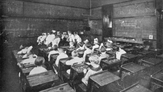 Gary has fortunately been able to begin with such an all-around system of education, putting it into operation in all her schools in a nearly complete form, because the town was made, as it were, at a stroke and has grown rapidly from a waste stretch of sand dunes to a prosperous town. But many other cities are realizing more and more strongly the necessity of linking their curriculum more closely to the lives of their pupils, by furnishing the children with a general training and outlook on life which will fit them for their place in the world as adults.269 Recently the Chicago public schools have been introducing vocational work in some of the school buildings, while technical high schools give courses that are vocational, besides work in trade-training. Of course such elaborate equipment as that in Gary is impractical in a building where the shops are not used by the high school as well as the grades. Twenty or more of the regular school buildings in the city have been fitted up with carpenter shops and cooking and sewing rooms as well as laboratories for work in science. Each one of these schools has a garden where the pupils learn how to do practical city gardening. From one-fourth to even a half of the children’s time is spent on manual training instead of one-eighth as in the other schools of the city, and in other respects the regular curriculum is being followed. The teachers in the schools who were there before the change of program feel convinced that the pupils not only get through with as much book work as they did when practically all their time was given to it, but that they actually do their work better because of the motive furnished by the hand work.