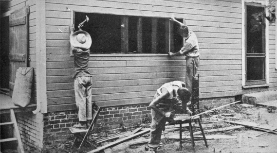 The money and space required to equip and run these shops are saved from an ordinary sized school budget by the “two school system” that has been described above, and by the fact that all the expense usually charged by a school to repairs and paid out to contractors, is spent on these shops and for the salaries of the skilled workmen who teach in them. The buildings are kept in better repair than where all the work is done during the summer vacation, because as soon as anything needs to be fixed the pupils who are254 working in the shop that does that kind of work get at the repairs under the direction of the teacher. These shops can not be considered in any way an unnecessary luxury because they are used also by the high school pupils who are specializing for one kind of work and by the night and summer school for their vocational classes. The school management says in regard to the success of this plan, “When you have provided a plant where the children may live a complete life eight hours a day in work, study, and play, it is the simplest thing imaginable to permit the children in the workshops, under the direction and with the help of well-trained men and women, to assume the responsibility for the equipment and maintenance of the school plant. An industrial and commercial school for every child is thus provided without extra cost to the taxpayers.”