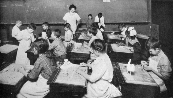 But conditions changed and school materials and methods did not change to keep pace. Population shifted to urban centers. Production became a mass affair, carried on in big factories, instead of a household affair. Growth of steam and electric transportation brought about production for distant markets, even for a world market. Industry was no longer a local or neighborhood concern. Manufacturing was split up into a very great variety of separate processes through the economies incident upon241 extreme division of labor. Even the working-men in a particular line of industry rarely have any chance to become acquainted with the entire course of production, while outsiders see practically nothing but either the raw material on one hand or the finished product on the other. Machines depend in their action upon complicated facts and principles of nature which are not recognized by the worker unless he has had special intellectual training. The machine worker, unlike the older hand worker, is following blindly the intelligence of others instead of his own knowledge of materials, tools, and processes. With the passing of pioneer conditions passed also the days when almost every individual looked forward to being at some time in control of a business of his own. Great masses of men have no other expectation than to be permanently hired for pay to work for others. Inequalities of wealth have multiplied, so that demand for the labor of children has become a pressing menace to the serious education of great numbers. On the other hand, children in wealthy families have lost the moral and practical discipline that once came from sharing in the round of home duties. For a large number there is little alternative, especially in larger cities, between irksome child labor and242 demoralizing child idleness. Inquiries conducted by competent authorities show that in the great centers of population opportunities for play are so inadequate that free time is not even spent in wholesome recreations by a majority of children.