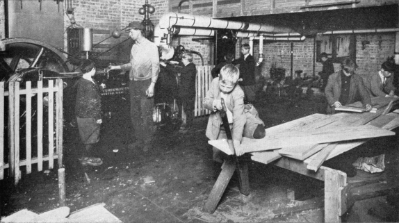 The attempts of the Cincinnati school board to give the school children of that city a better education, by giving them a better preparation for the future, have been made from a somewhat different point of view. Three-fourths of the school children of Cincinnati, as of so many other cities, leave school when they are fourteen years old; most of them do not go beyond the fifth grade. They do this because they feel they must go to work in order to give help at home. Of course a fifth-grade pupil of fourteen is fitted to do only the easiest and most mechanical work and so receives very low pay. Once at work in factory or shop on this routine kind of work, the chances for the worker to advance, or to become master of any trade, or branch of279 his trade, are slight. His schooling has given him only an elementary control of the three R’s, and usually no knowledge of the theory or practice of the business he is engaged in. He soon finds himself in a position where he is not learning any more. It is only the very exceptional person who will go on educating himself and push ahead to a position of independence or responsibility under such conditions. The person who becomes economically swamped in the cheapest grades of work is not going to show much energy or intelligence in his life as citizen. The experiments of the Cincinnati schools in introducing manual and industrial training have been directed to remedying this evil by making the school work such that the pupil will desire to stay in school if this is in any way possible; and if it is not, by giving him opportunities to go on with his education while working.