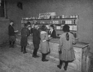 In the same way the boy chooses what shop he will go into for three months. In the carpenter shop he will be old enough really to make for260 himself some of the simpler things needed in the school building. If he choose the forging or casting shop he will have a chance to help at shoeing the horses for the use of the department of education, or to help an older boy make the mold for the iron stand to a school desk. In such ways he finds out something about the way iron is used for so many of our commonest things. In the fifth and sixth grades nearly all the boys try to get at least one course in store keeping. Here they go into the school storerooms with the janitor; and with the school lists at hand unpack and check up the material which comes in both from the workshops and from outside. Then as these things are needed through the building they take the requisitions from the office, distribute the material, and make the proper entries on the books. They are taught practical bookkeeping and are responsible for the smooth running of the supply department while they are working there. As they learn the cost of all the material as well as the method of caring for it and distributing it, they get a good idea of the way a city spends its taxes and of the general business methods in use in stores. Both boys and girls may take a beginners’ course in bookkeeping and office management. Here they go into what is called the school bank, and keep261 the records of the shop work of all the pupils in the school.