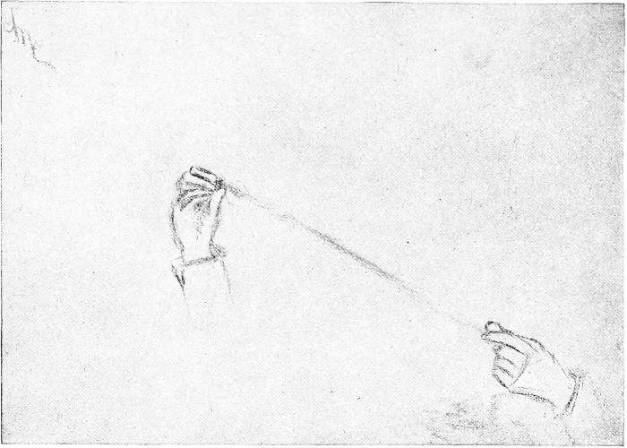 There is nothing which strikes more oddly upon the average intelligent visitor than to see boys as well as girls of ten, twelve, and thirteen years of age engaged in sewing and weaving. If we look at this from the standpoint of preparation of the boys for sewing on buttons and making patches, we get a narrow and utilitarian conception—a basis that hardly justifies giving prominence to this sort of work in the school. But if we look at it from another side, we find that this work[18] gives the point of departure from which the child can trace and follow the progress of mankind in history, getting an insight also into the materials used and the mechanical principles involved. In connection with these occupations the historic development of man is recapitulated. For example, the children are first given the raw material—the flax, the cotton plant, the wool as it comes from the back of the sheep (if we could take them to the place where the sheep are sheared, so much the better). Then a study is made of these materials from the standpoint of their adaptation to the uses to which they may be put. For instance, a comparison of the cotton fiber with wool fiber is made. I did not know, until the children told me, that the reason for the late development of the cotton industry as compared with the woolen is that the cotton fiber is so very difficult to free by hand from the seeds. The children in one group worked thirty minutes freeing cotton fibers from the boll and seeds, and succeeded in getting out less than one ounce. They could easily believe that one person could gin only one pound a day by hand, and could understand why their ancestors wore woolen instead of cotton clothing. Among other things discovered as affecting their relative utilities was the shortness of the cotton fiber as compared with that of wool, the former averaging, say, one-third of an inch in length, while the latter run to three[19] inches in length; also that the fibers of cotton are smooth and do not cling together, while the wool has a certain roughness which makes the fibers stick, thus assisting the spinning. The children worked this out for themselves with the actual material, aided by questions and suggestions from the teacher.