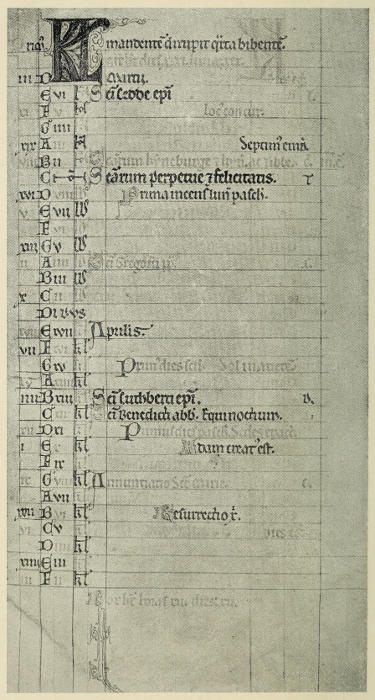 [Gasquet, Abbot, and Bishop, Edmund. The Bosworth Psalter. London, 1908. Contains valuable information about some Mediaeval Kalendars, with discussions of them. Edd.]