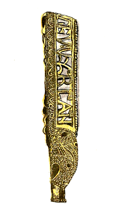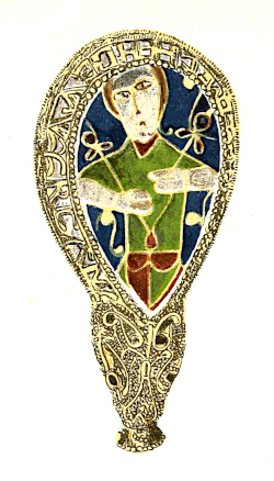 ‘Doctor Hickes interprets this inscription to be “Alfred ordered me to be made”; and supposes the enamelled figure to be the picture of St. Cuthbert, the tutelar saint of that King. The whole is of gold, over the enamel is a piece of rock crystal, half an inch thick: the gold rim is cut through to form the letters of the inscription. This is now among the antiquities of the University of Oxford.’
