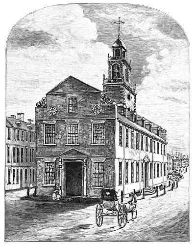 [30] Richard Paton’s picture of this sea-fight, of which a photogravure is here given, departs somewhat from the strict truth of history, as is apt to be the case with historical pictures. The Alliance is represented in the act of delivering her impartial volley into the stern of the Serapis and the bow of the Bon Homme Richard, which occurred soon after ten o’clock. At the same time the mainmast of the Serapis is represented as overboard, whereas it did not fall until the ships were separated after the surrender, as late as half past eleven. Apart from this inaccuracy, the general conception of the picture is admirable. The engraving, published in 1780, was dedicated to Sir Richard Pearson, the captain of the Serapis, who was deservedly knighted for his heroic resistance, which saved the Baltic fleet, although he was worsted in the fight. There is a tradition that Paul Jones, on hearing of the honour conferred upon Pearson, good-naturedly observed, “If I ever meet him again I’ll make a lord of him.”