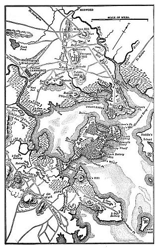 [41] It is interesting to contrast with the movements of Cornwallis those of an eminent general in more recent times. Early in 1865 General Sherman was at Columbia, on the Congaree river, about thirty miles southwest from Camden, and the difficult task before him was, without any secure base of operations nearer than Savannah, to push the Confederate forces northward to a decisive defeat in North Carolina. With this end in view, Sherman feigned to be aiming at Charlotte, while in reality he moved the bulk of his army northeasterly across the Pedee and Cape Fear rivers to Goldsborough, near the coast, where he established a new and secure base of operations. The battle of Bentonville, fought just before Sherman reached this base, was the unsuccessful attempt of his skilful antagonist, Joseph Johnston, to prevent his reaching it. Sherman’s march northwestward from his new base was well secured, and Johnston’s surrender near Hillsborough was a natural sequel. But—as my friend, Mr. John Codman Ropes, in a letter to me once pointed out—"had Sherman pursued his march from Columbia to Charlotte, and thence until he had met and fought Johnston, the result of the inevitable losses of the battle, leaving the question of victory aside, might have been such as to compel a retreat to Savannah.”