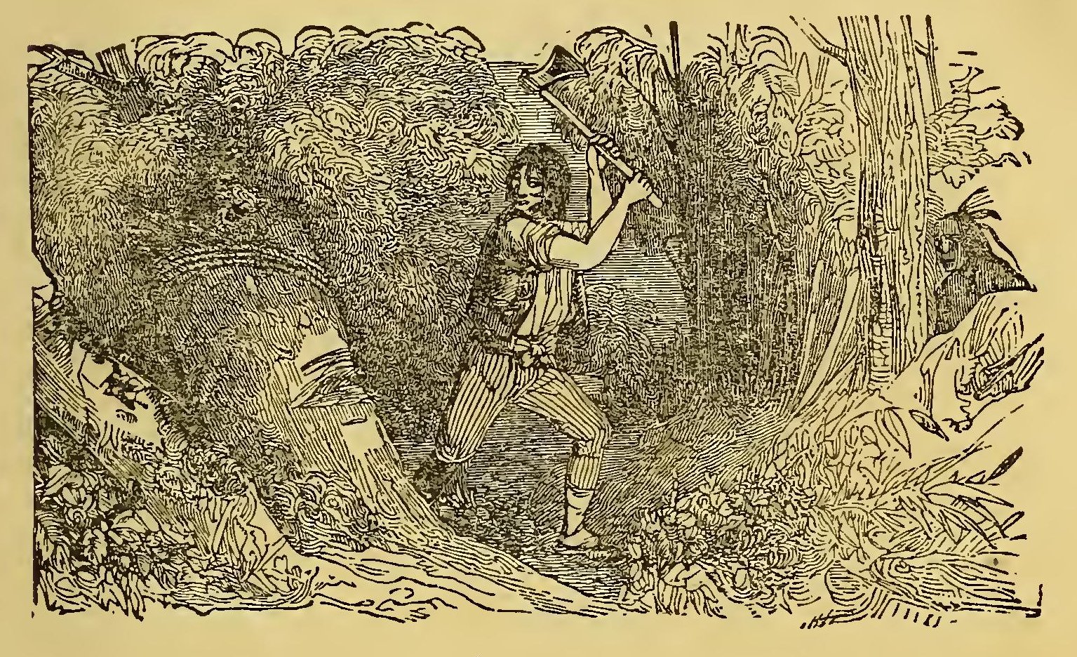 Accordingly, when he arrived at the spot, he found the Indian already there, provided with two muskets and powder, and two knapsacks. The Indian ordered him to take one of each, and to follow him. The direction of their march was southward. The man followed without the least knowledge of what he was to do, or whither he was going, but he concluded that if the Indian intended to do him harm, he would have despatched him at the first meeting, and certainly would not have provided him with a musket and powder for defence. His fears, therefore, gradually subsided, although the Indian maintained an obstinate silence when he questioned him concerning the object of their expedition.