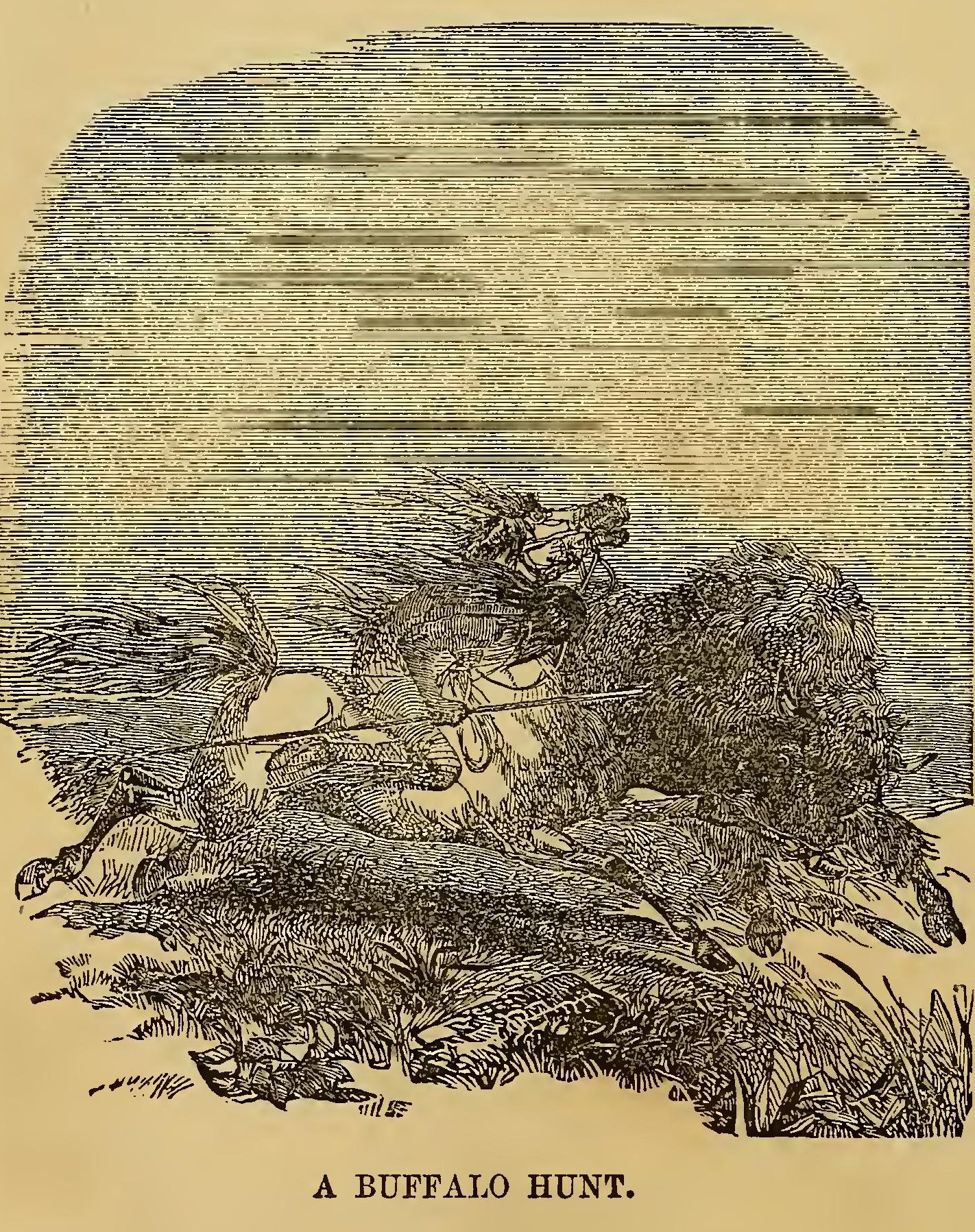Mrs. M’Dougall had a young child, which the Indian’s quick eye had not failed to notice; and finding that words and gestures would not persuade his Scotch friend, he approached the cradle, seized the child, and darted out of the house with the speed of the antelope. The father and mother instantly followed, calling loudly on him to return; but he had no such intention. He led them on, now slower, now faster, occasionally turning towards them, laughing and holding up the child to their view. After proceeding in this manner for some time, the Indian halted on the margin of a most beautiful prairie, covered with the richest vegetation, and extending over several thousand acres. In a moment after, the child was restored to its parents, who, wondering at such strange proceedings, stood awhile panting for breath. On the other hand, the Indian seemed overjoyed at the success of his manoevre, and never did a human being frisk about and gesticulate with greater animation.