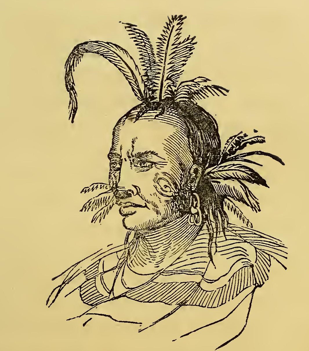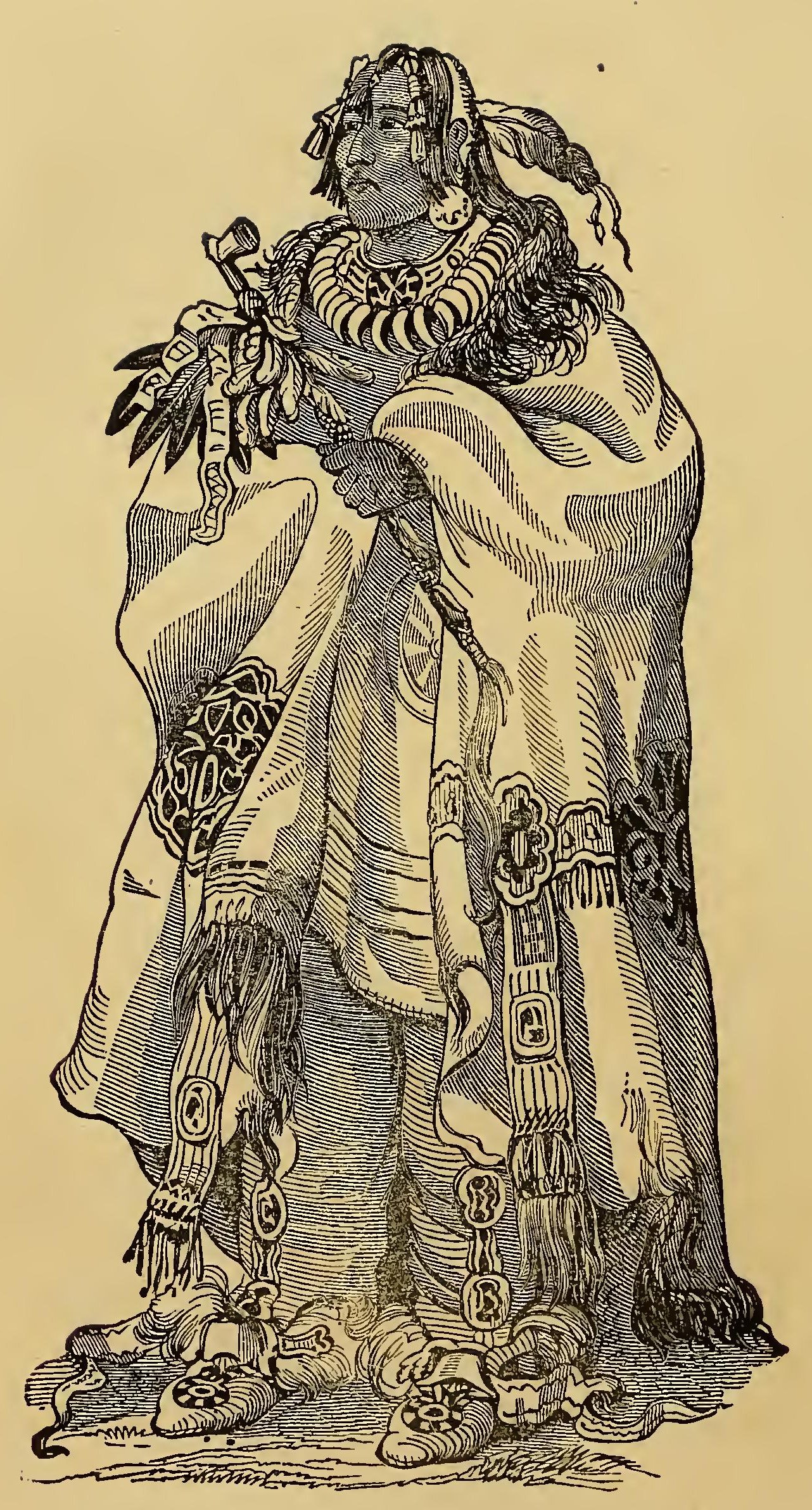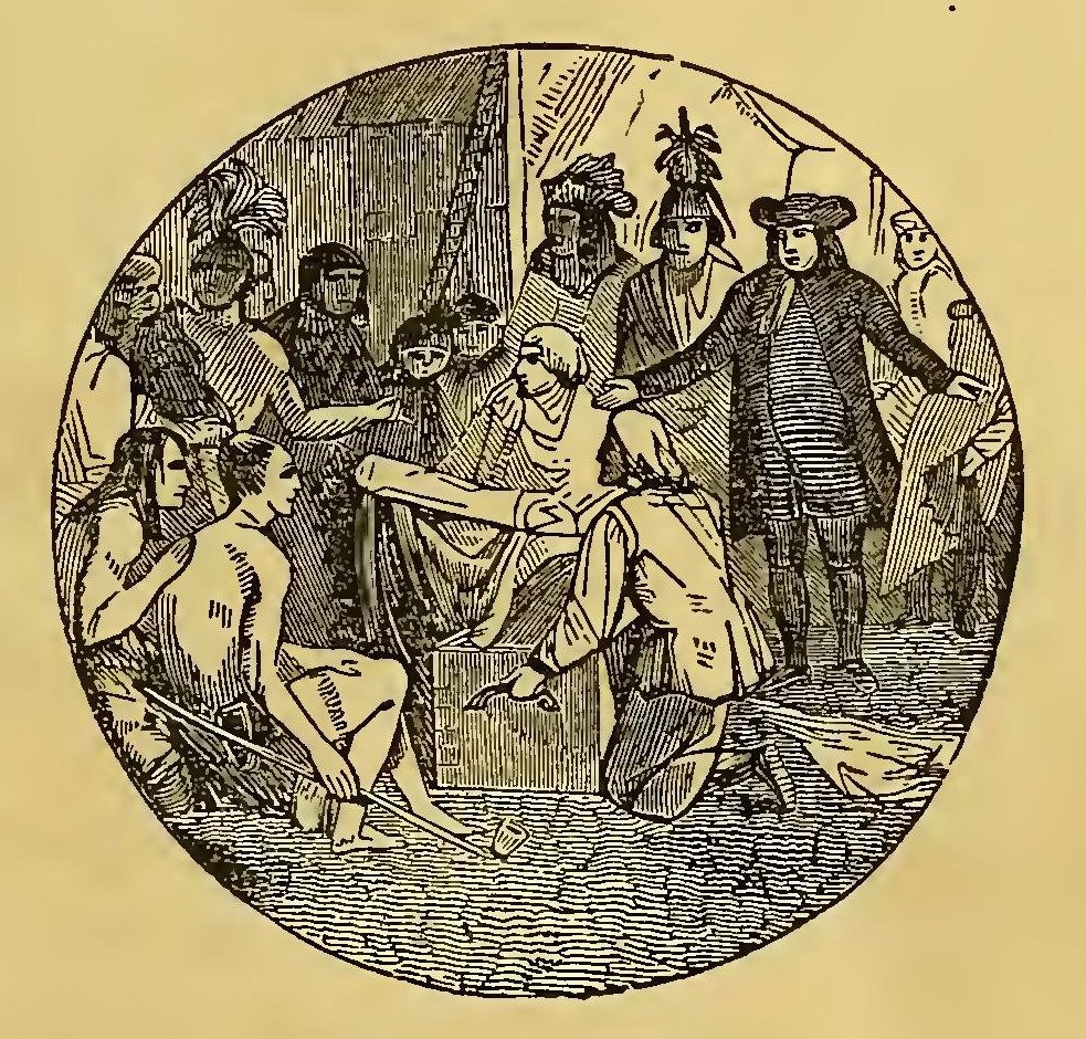 By command of Baltimore he was received with as much show and parade as they could assume, and it seemed to have had its intended effect upon him; everything in the place attracted his attention, and called forth expressions of delight. Seeing the fondness he evinced for bright things, the governor presented him with a shining pewter dish, which he suspended around his neck and seemed to regard it as a peculiar mark of honor and distinction.