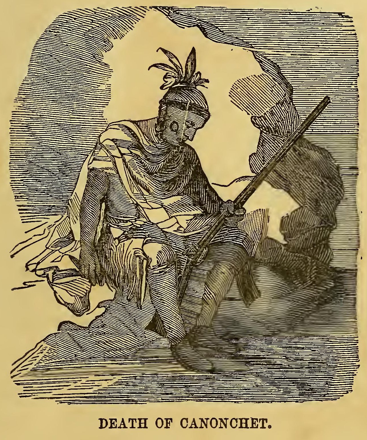 When the Indians arrived in sight of the English camp, Wanou showed the young officer his countrymen, observing his countenance the while. “There are thy brethren,” said he, “waiting to fight us. Listen to me. I have saved thy life. I have taught thee to make a canoe, and bow and arrows; to hunt the bear and the buffalo; to bring down the deer at full speed, and to outwit even the cunning fox. What wast thou when I first led thee to my wigwam? Thy hands were like those of a child; they served neither to support nor to defend thee; thou wert ignorant, but from me thou hast learned every thing. Wilt thou be ungrateful, and raise up thy arm against the red man?”