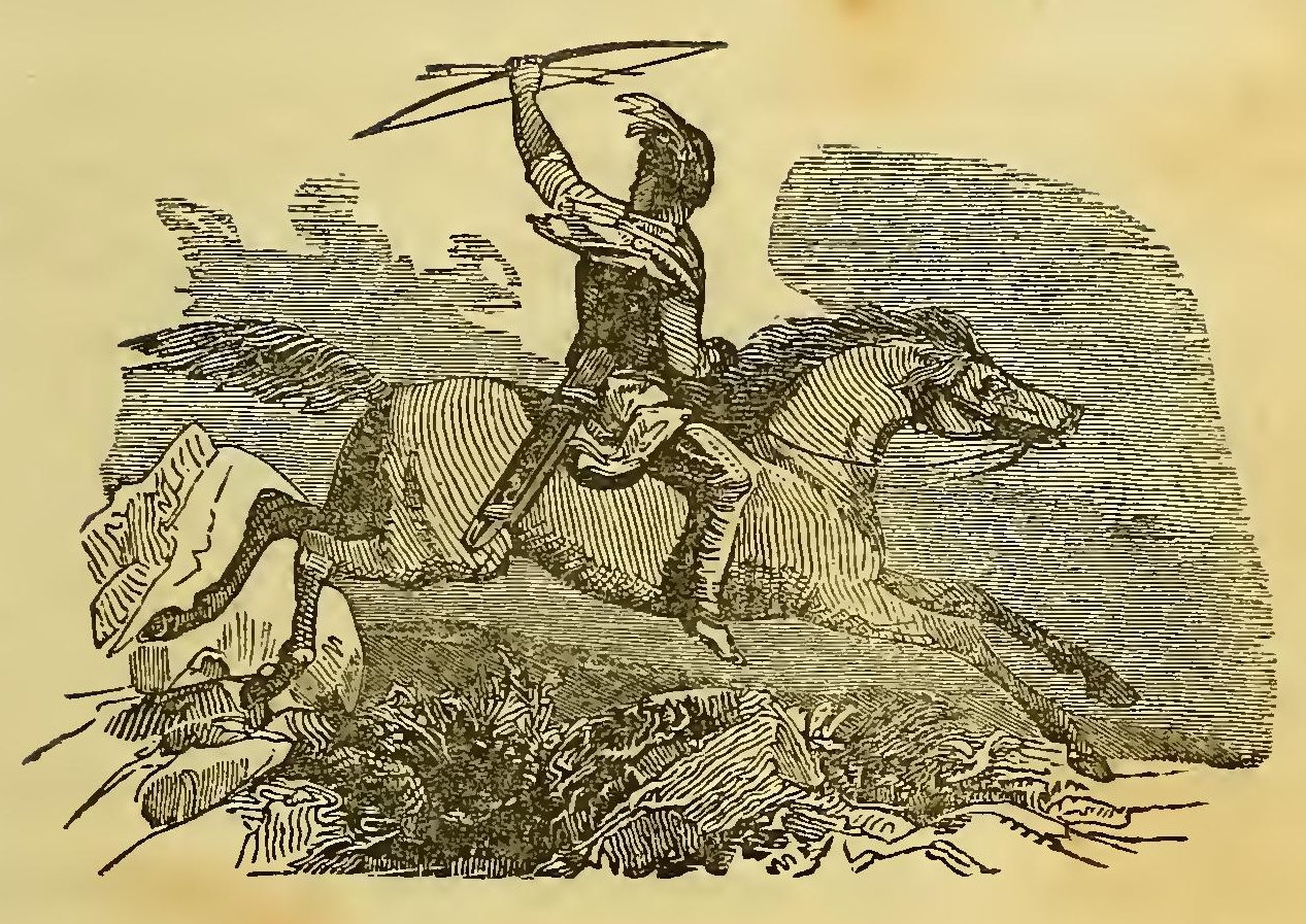 URING the frequent wars between the Indians and the early settlers of New England, the former defeated a party of English soldiers. Their retreat was without order; and a young English officer, in attempting to escape, was pursued by two savages. Finding escape impracticable, and determined to sell his life as dearly as possible, he turned round to face his foes. A violent struggle commenced, and he must have fallen, if an old chief had not thrown himself between the combatants. The red men instantly retired with respect. The old man took the young officer by the hand, dispelled his fears, and led him through the forest to his wigwam, where he treated him with the greatest kindness. He seemed to take pleasure in the youth’s company; he was his constant companion; he taught him his language, customs, and arts. Thoughts of home would sometimes haunt the young Englishman. At these times, Wanou would survey his young friend attentively, and the tears would fill his eyes.