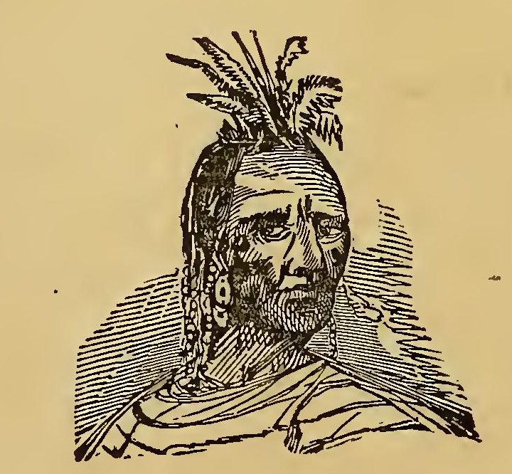 Mr. Catlin painted his portrait, and represented him as he wished, standing on the Table Rock, at the Falls of Niagara; about which place he thought his spirit would linger after his death. Red Jacket died in 1836. A handsome and appropriate monument was erected over his grave, by Mr. Henry Placide, the comedian; and more lasting monuments, in historical form, have been written by distinguished authors. As an orator, this gifted chief was equal to any of modern times. His speeches display the greatest sagacity and sublimity of ideas, with the greatest force and condensation of expression. His gestures while speaking are said to have been singularly significant; and the features of his face, particularly his piercing eyes, full of expression. He was in truth, a “forest-born Demosthenes.”