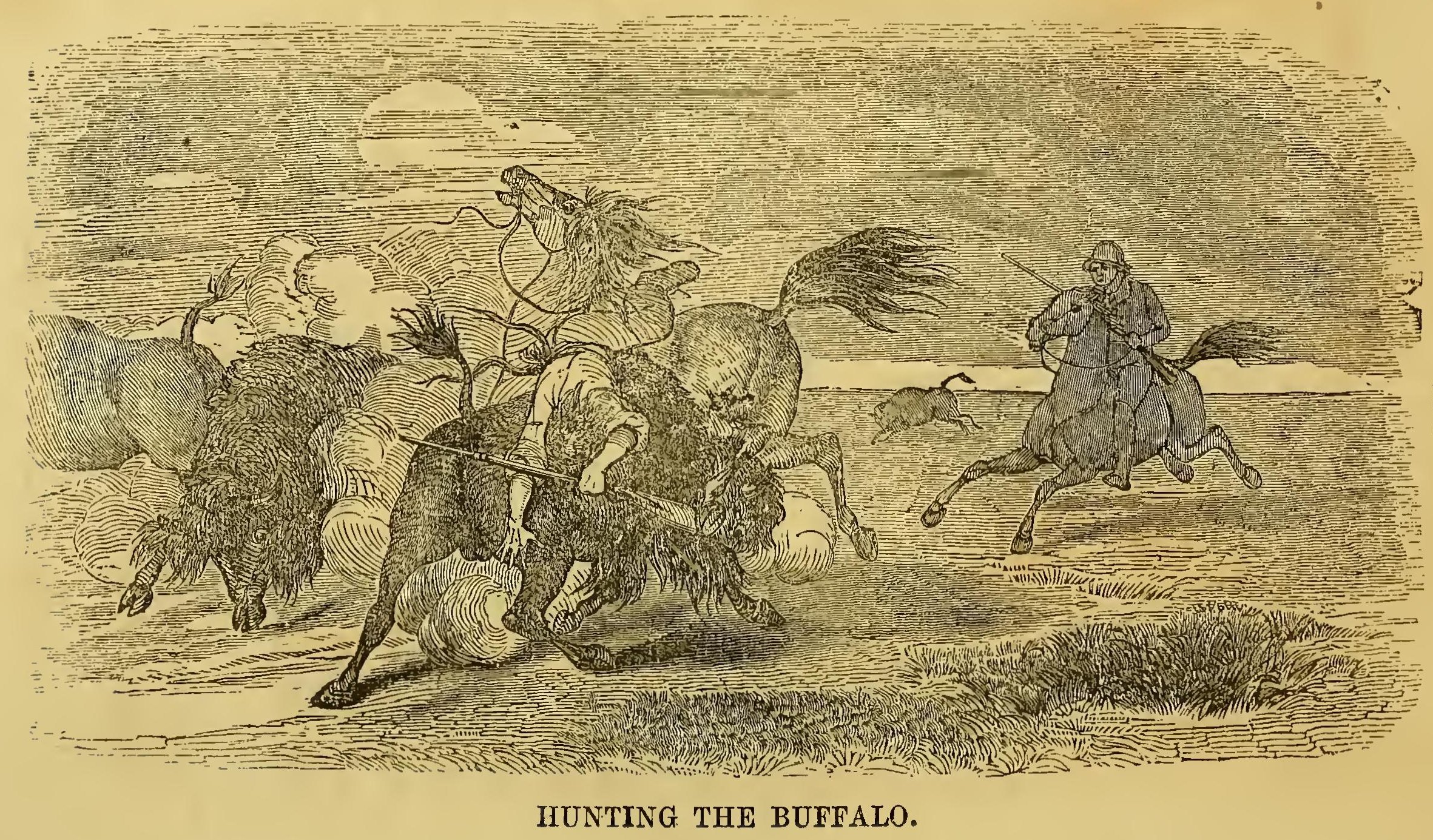 During the cold weather, when the men were in a great measure unemployed, the natives instructed them in the various ways of pursuing game, the snares laid for them, and the best method of approaching the unsuspecting prey. One very singular mode of gaining on the deer, in which they initiated the whites, until they became by practice almost as expert as themselves, deserves particular mention: An Indian hunter and a party of whites, go into the woods together, and presently discover a deer in the distance, feeding, and warily watching for danger, the whites, as directed, would hide themselves behind a rock, and the Indian, putting on the skin of a deer, to which the head and horns were left attached, would creep along, in a circuitous direction, towards the deer, mimicking to perfection the gait and appearance of that animal. Cautiously advancing, pretending all the time to be feeding, he would approach the animal, until he had excited its attention, when it would raise its head and look curiously at him, when he was within a few feet of it, he would partially, disengage himself from his covering, and drawing out his bow and arrow, with which he was previously provided, would take deliberate and fatal aim, and speedily bring the noble beast to the ground.