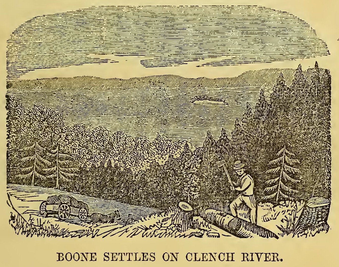 Accordingly, Dean selected a high bank, rocky and castellated at the water’s side, and bare of trees for a considerable distance inland, for the site of two cabins. The labor of building log cabins was novel to the young men. Yet, though difficult, its novelty and romantic character made it pleasing. James Ballybarn was a regularly taught carpenter and joiner, and his knowledge was brought into use. Dean planned the cabins in the simplest but most comfortable manner, and all hands worked hard at cutting down trees and hewing them into the proper size and form. While the cabins were preparing, the young pioneers slept in a rude hut constructed of their chests and tools, and covered with the boughs of small trees.