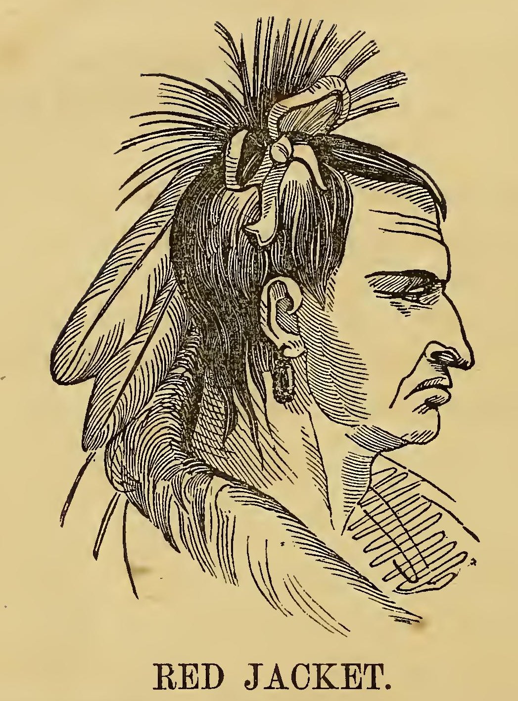 HE famous Red Jacket was a chief of the Senecas. His Indian name, Sagouatha, or, one who keeps awake, was affixed to many of the important treaties concluded between the Senecas and the white people, and he became renowned among both races for his wisdom and eloquence. Without the advantages of illustrious descent, and with no extraordinary military talents, Red Jacket rose to a high position in the esteem of the red men. In the year 1805, a council was held at Buffalo, New York, at which many of the Seneca chiefs and warriors were present. At this council, Red Jacket made a speech, in answer to a missionary from Massachusetts, which in force and eloquence was worthy of the great orators of antiquity. The following is the most remarkable portion of this great effort: