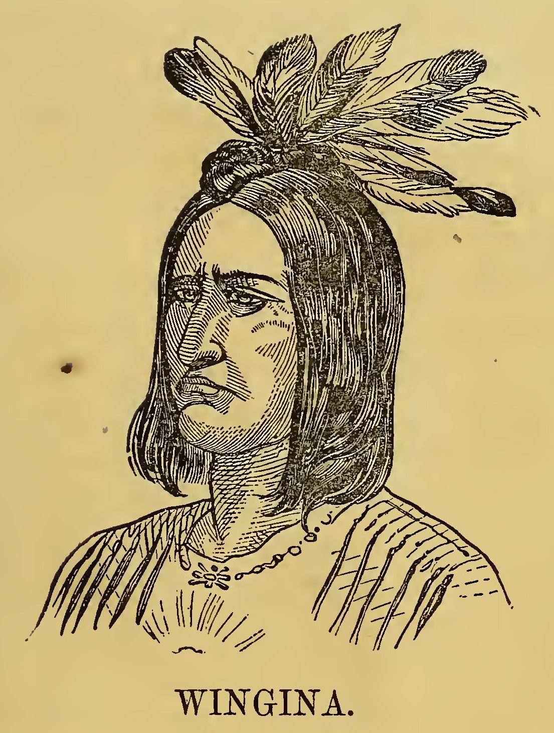 INGINA was the first chief known to the English settlers of Virginia. The voyagers, Amidas and Barlow, sent out by Sir Walter Raleigh, in the summer of 1584, landed upon the island of Wokoken, adjacent to Virginia. They saw several of the natives, and made them presents. Wingina was at this time confined in his cabin, from wounds received in battle, and did not see the English. He had not much faith in their good intentions, and would not trust them far.