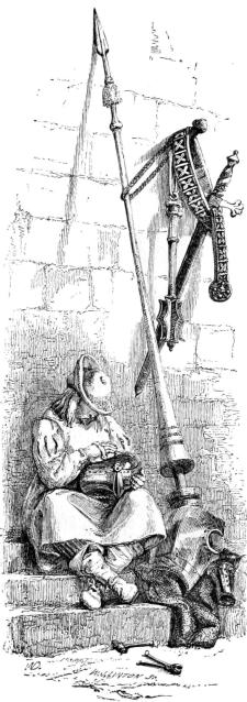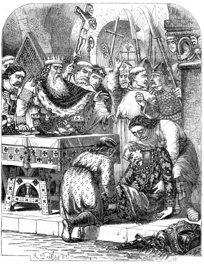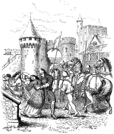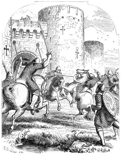 Notwithstanding the supply of fresh water, Beauclerc could not[Pg 225] much longer hold out. After enduring a rigorous siege he was compelled, for want of provisions, to submit to fate. Rufus despoiled him of all he possessed, and it was with difficulty he obtained leave to depart to Brittany. His escort consisted of one knight, three squires, and a chaplain; and with these adherents, who either disdained to desert him in his distress, or felt strong faith in his destiny, Beauclerc wandered about, sometimes in want of the necessaries of life, and utterly hopeless of reaching any place that could be called a home.