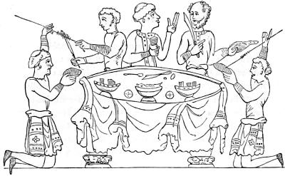 With these words, Rufus tied his shoes, left his chamber, and seated himself at table with his friends around him. It was a gay party that feasted that morning in the hunting-lodge of Malwood, and included many personages of high degree. Among them were the king's brother, Henry Beauclerc; his bosom friend, Walter Tyrel; his bow-bearer, Nigel de Albini; his treasurer, William de Breteuil, who was eldest son of the great Fitzosborne, and hardly less proud than his father had been. Perhaps Rufus, with the scene of the previous night preying on his mind, felt unwontedly depressed. At all events, he ate more than usual, and drank copiously, as if to banish sadness. The potations, of course, soon took effect. The[Pg 229] king's spirits rose. He blustered and swore with characteristic indecency.