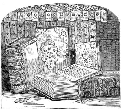 "I must confess," she said, "that I have sometimes appeared veiled, but only for this reason: in my youth, when I was under the care of my aunt Christina, she, to protect me, as she said, from the Normans—who then assailed the honour of every woman they met[Pg 233]—used to place a piece of black stuff on my head; and when I refused to wear it, she treated me harshly. In her presence I wore this cloth, but as soon as she left me I threw it on the ground, and trampled on it in childish anger."