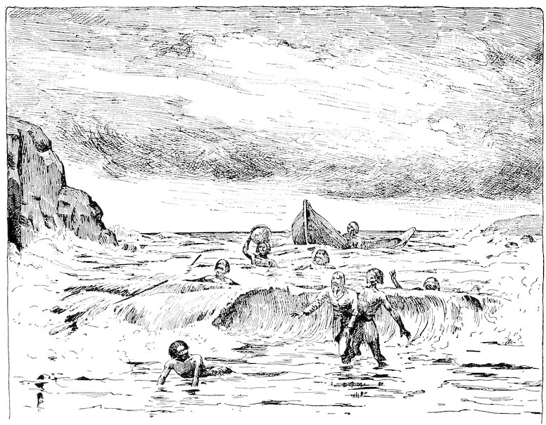 Meantime, having lost several hours, the vessel had drifted leeward; darkness suddenly settled upon us, and when we were out at sea we lost sight of her and she of us. After drifting about for some hours in a heavy sea and unable to find her, those in charge of the boats came near for consultation, and, if possible, to save the lives of all. We advised that they should steer for Port Resolution by the flame of the Volcano—a never-failing light-house, seen fifty miles 352away—and there await the vessel. The boats were to keep within hearing of each other by constant calling; but this was soon lost to the ear, though on arriving in the bay we found they had got to anchor before us. There we sat in the boats and waited for the coming day. As the light appeared, we anchored as far out as possible, beyond the reach of musket shots; and there without water or food we sat under a tropical sun till mid-day came, and still there was no sign of the vessel. The mate at last put all the passengers and the poorest seamen into one boat and left her to swing at anchor; while, with a strong crew in the other, he started off in search of the vessel.