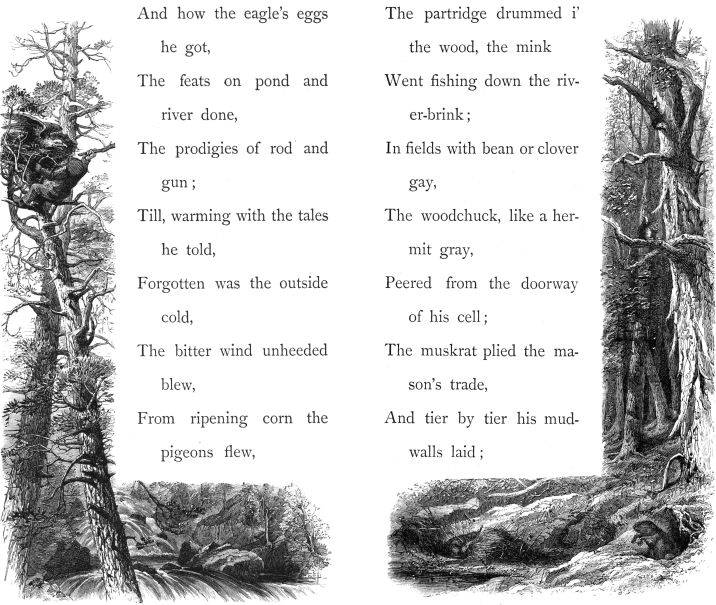 HE sun that brief December day Rose cheerless over hills of gray, And, darkly circled, gave at noon A sadder light than waning moon. Slow tracing down the thickening sky Its mute and ominous prophecy, A portent seeming less than threat, It sank from sight before it set. |