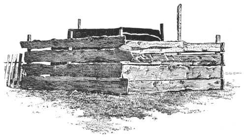 There was the adobe house, built originally for the kitchens of the post at the date of its first establishment, some time in 1857; there were the “jacal” sheds, built of upright logs, chinked with mud and roofed with smaller branches and more mud; and the tents, long since “condemned” and forgotten by the quartermaster to whom they had originally been invoiced. Each and all of these examples of the Renaissance style of architecture, as it found expression in the valley of the Gila, was provided with a “ramada” in front, which, at a small expenditure of labor in erecting a few additional upright saplings and cross-pieces, and a covering of cottonwood foliage, secured a modicum of shelter from the fierce shafts of a sun which shone not to warm and enlighten, but to enervate and kill.
