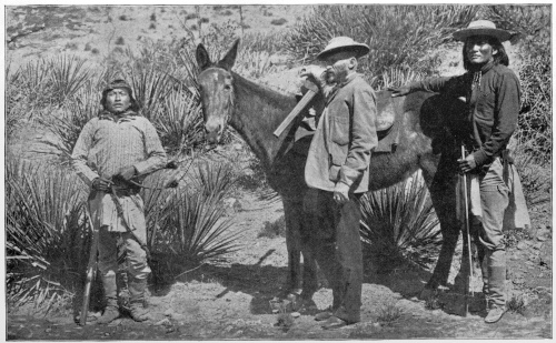 In no other section can there be found such extensive areas of desert crossed in every direction by the most asperous mountains, whose profound cañons are the wonder of the world, whose parched flanks are matted with the thorny and leafless vegetation 2of the tropics, and whose lofty summits are black with the foliage of pines whose graceful branches bend in the welcome breezes from the temperate zone. Here one stumbles at almost every step upon the traces of former populations, of whom so little is known, or sees repeated from peak to peak the signal smokes of the fierce Apaches, whose hostility to the white man dates back to the time of Cortés.