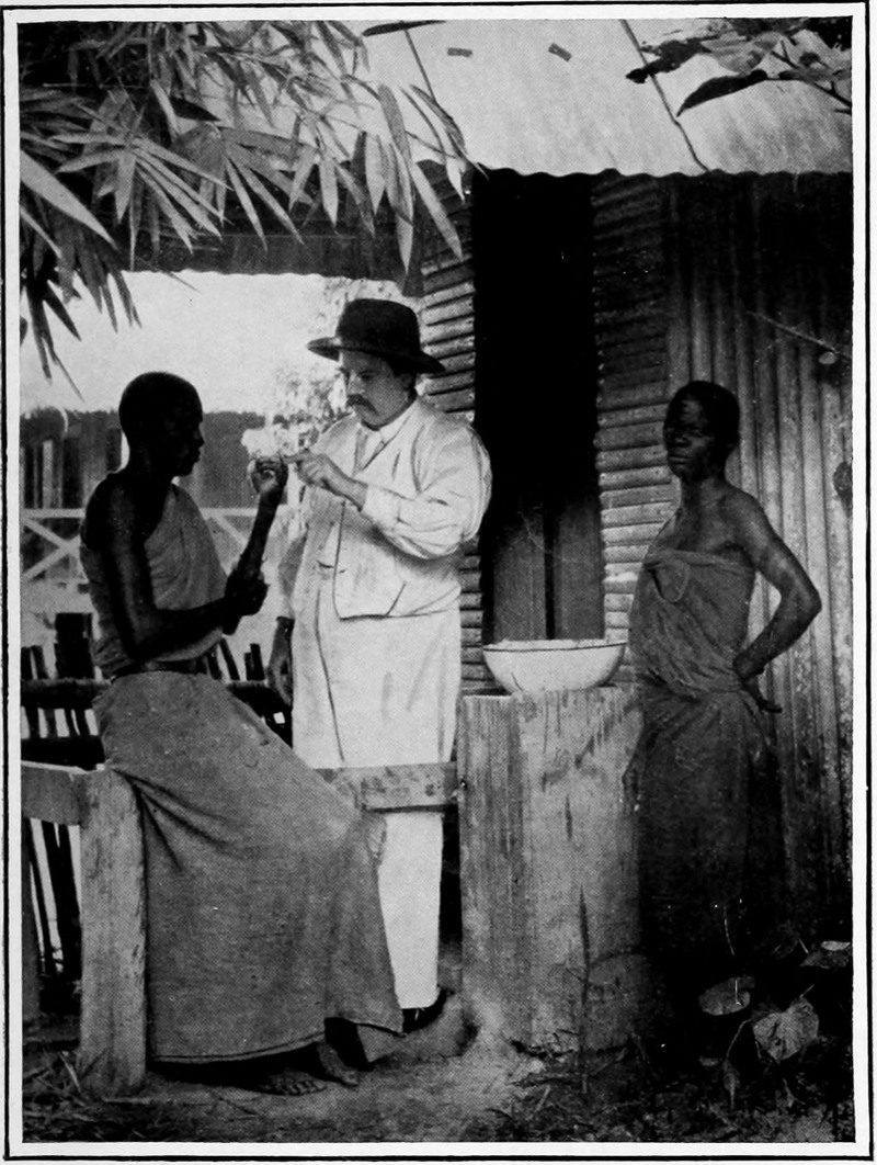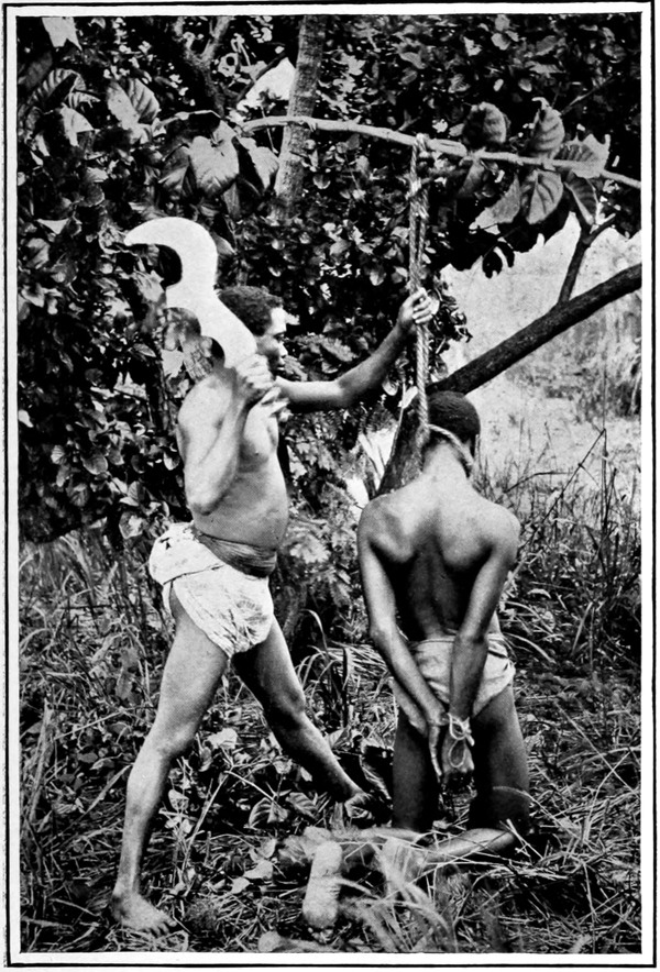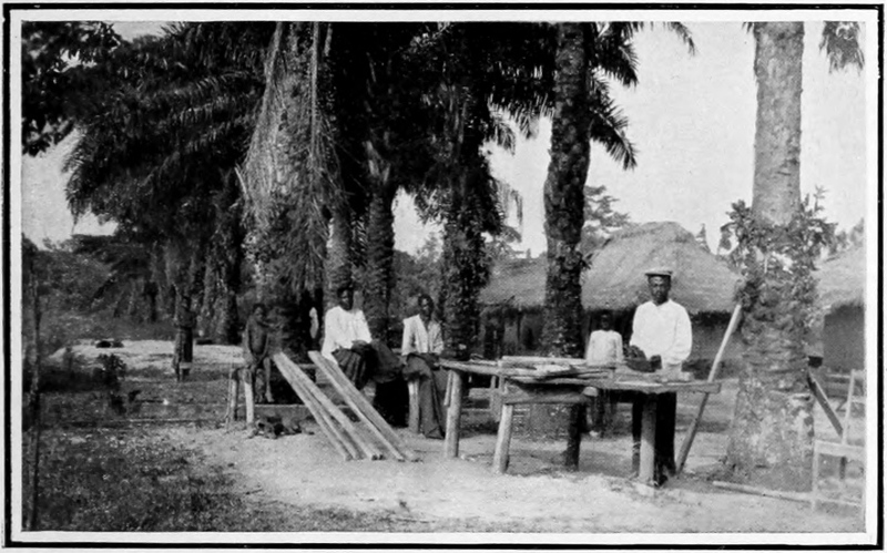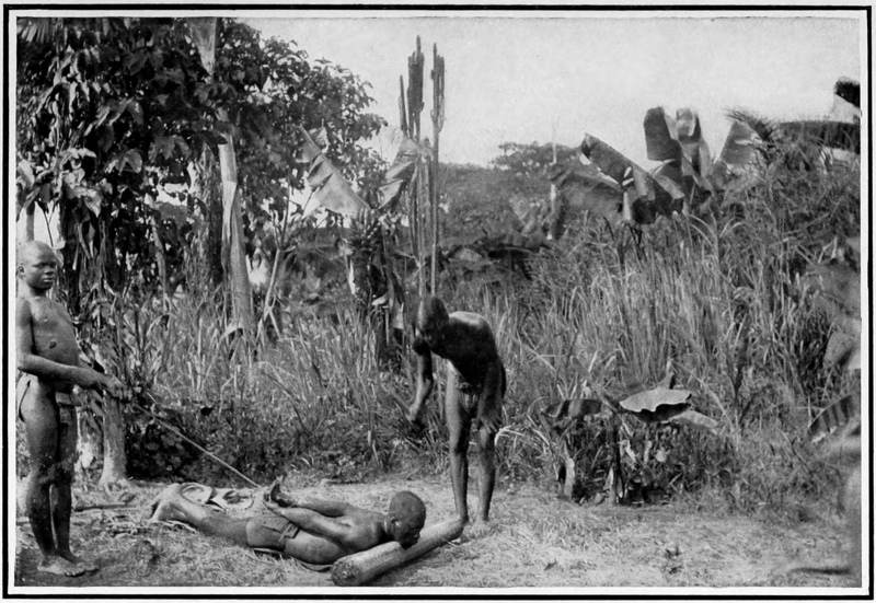 In the meantime the country had become the possession of the African International Association, which quickly changed into the Congo Free State with King Leopold II of Belgium as its ruler. Zanzibaris were imported during this period, armed with rifles, and sent up-country to found and occupy the State stations on the Upper Congo. These soldiers no doubt were liberally provided with brass rods to buy native food on their march to Stanley Pool; but they found a people practically unarmed, for what were flint-lock guns in the hands of natives—who depended more on the magic of their “medicine men” for straight shooting than on the accuracy of their aim—against weapons of precision in the hands of a trained and unscrupulous soldiery such as were the Zanzibaris? The results were constant raiding on the part of the Zanzibaris; looting of unprotected native huts; taking twenty rods’ worth of food and throwing down only two or three rods in payment; and often when there 21was a white officer in charge, and he was appealed to, no redress was obtained by the defrauded native, nor punishment meted out to the offender; but frequently the accuser was beaten from the white man’s presence, thus adding physical suffering and insult to the loss of goods.