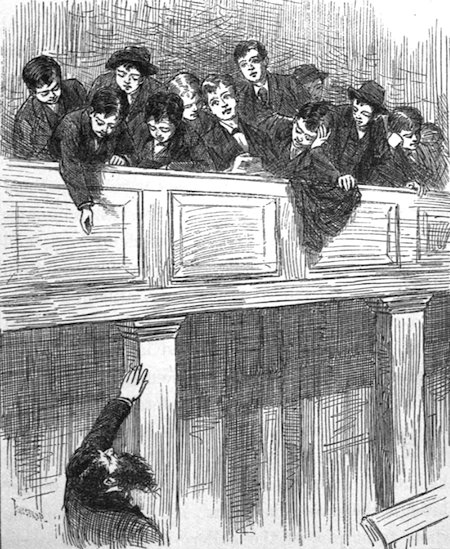When the day for the trial came, and the sheriff opened the court-room, the doors of which had been kept locked because of the immense crowd that threatened to fill the house in advance of the hour for the session, he was surprised to find seventeen boys in the front seats of the gallery. On questioning them, he learned that most of them had entered through a window before sunrise, and that two had slept in the gallery all night. He was about to remove the entire party, but the boys begged so 148hard to be allowed to remain, and they reminded him so earnestly that they all were particular friends of Paul, that the sheriff, who once had been a boy himself, relented, and let them remain.
