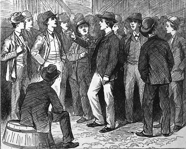 All of the boys seemed of Ned’s opinion, for when Mr. Morton, just as Bert Sharp entered, rang the school to order, and asked, “Who began that fight?” there was a general reply of, “Bert Sharp.”