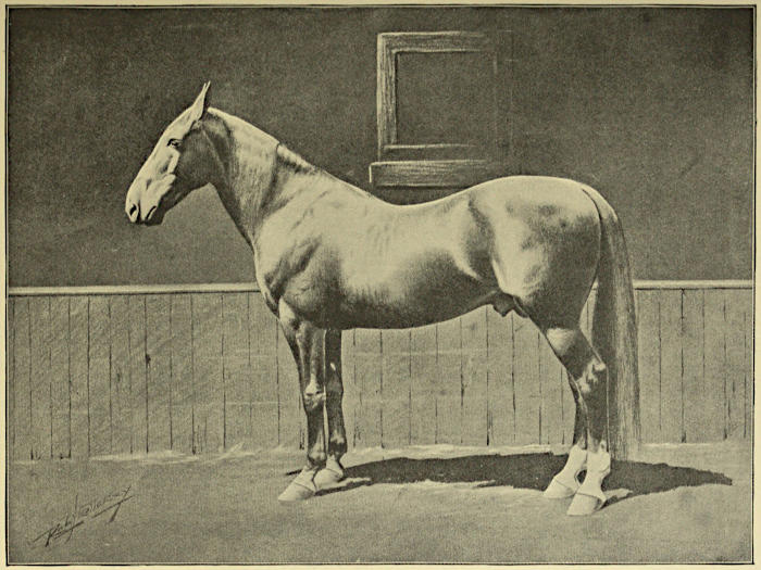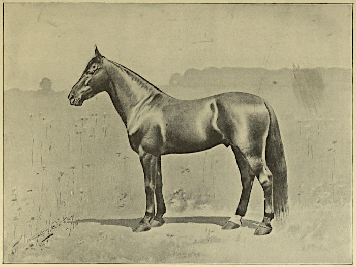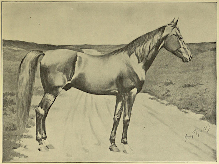 | The Arabian, the horse of romance—The horse naturally foreign to Arabia —Superiority of the camel for all Arabian needs—Scarcity of horses in Arabia in Mohammed’s time—Various preposterous traditions of Arab horsemanship—The Prophet’s mythical mares—Mohammed not in any sense a horseman—Early English Arabians—the Markham Arabian—The alleged Royal Mares—The Darley Arabian—The Godolphin Arabian—The Prince of Wales’ Arabian race horses—Mr. Blunt’s pilgrimage to the Euphrates—His purchases of so-called Arabians—Deyr[vi] as a great horse market where everything is thoroughbred—Failure of Mr. Blunt’s experiments—Various Arabian horses brought to America —Horses sent to our Presidents—Disastrous experiments of A. Keene Richards—Tendency of Arab romancing from Ben Hur | 51-66 |