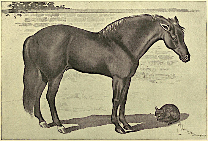 The facts presented touching the introduction of the horse into Egypt, and two thousand years later into Arabia, as well as the plebeian blood from which the English race horse has derived his great speed, will be a shock to the nerves of the romanticists of the old world as well as the new. Taking the facts of history and well-known experiences together, my readers can determine for themselves whether the claims for the superiority of Arabian blood is not pure fiction. For my own part I cannot recognize any blood in all horsedom as “royal blood” except that which is found in the veins of the horse that “has gone out and done it,” either himself or in his progeny.