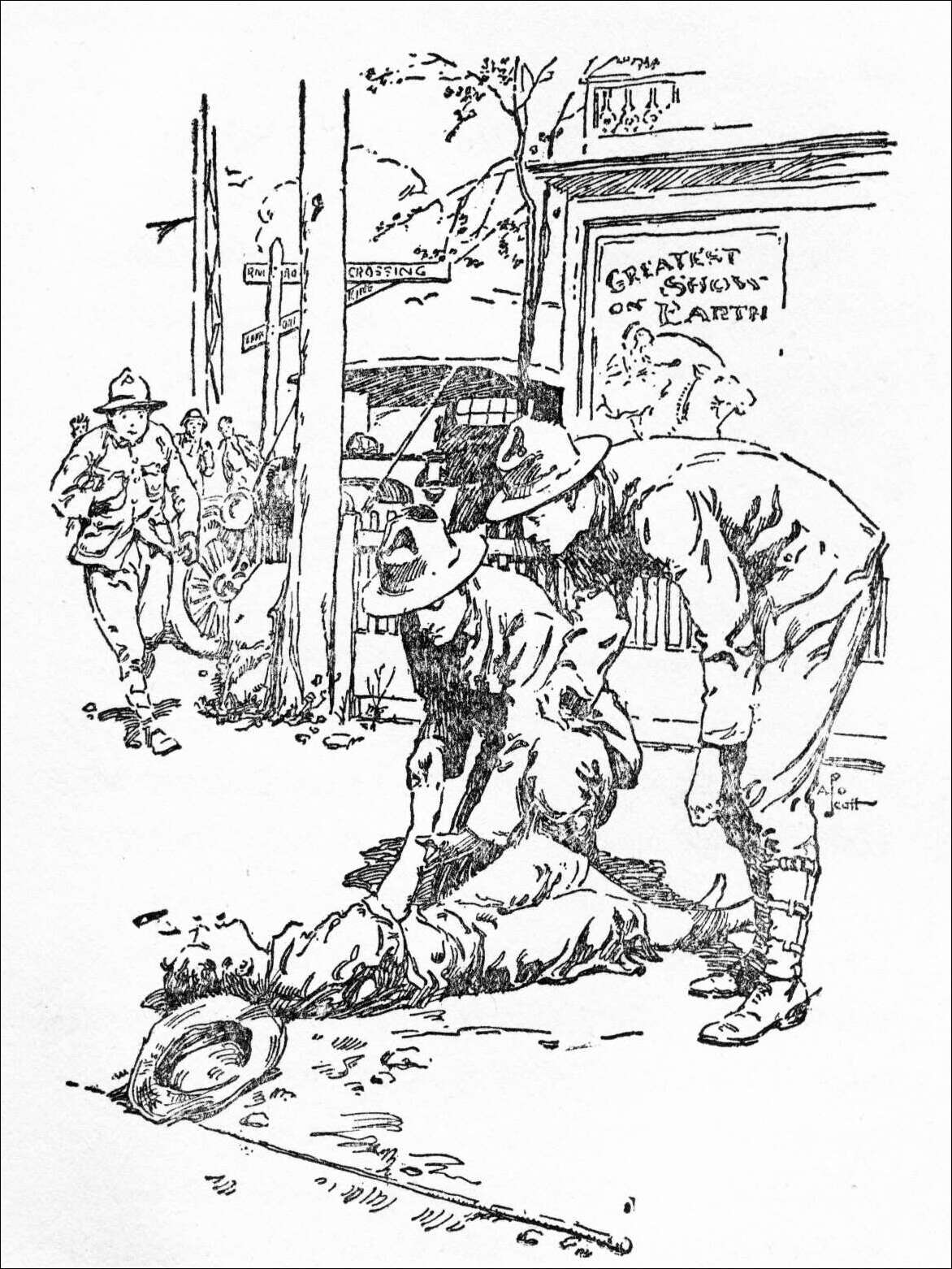 The patrol leader was hastily examining the little fellow’s arm.