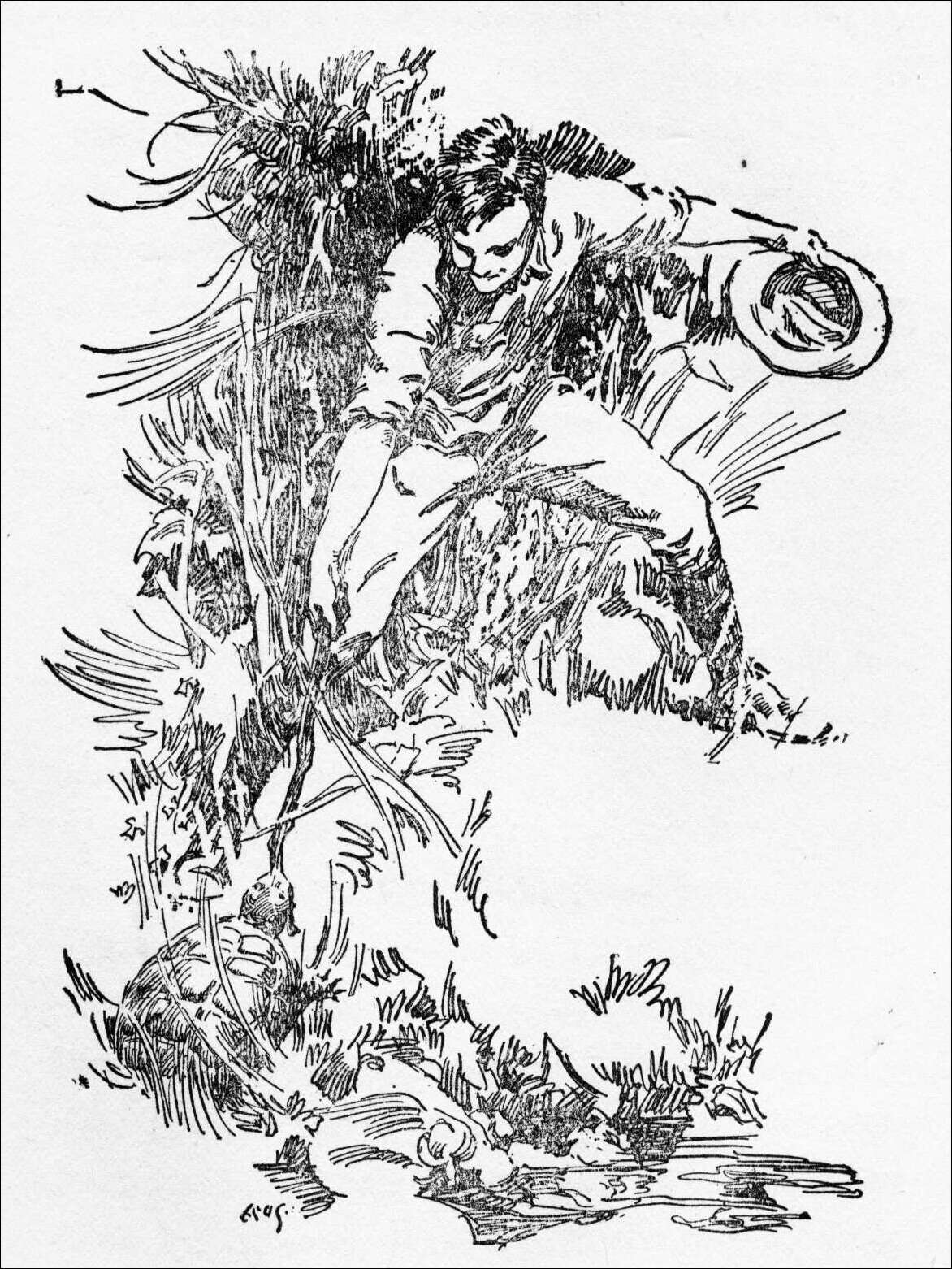 “Oh! look, boys, look there at that horse acting crazy! One of the cinders from the engine must have fallen on his back and burned him. There, he’s broke loose and is coming this way like a house afire! Somebody get hold of the reins and stop him!”