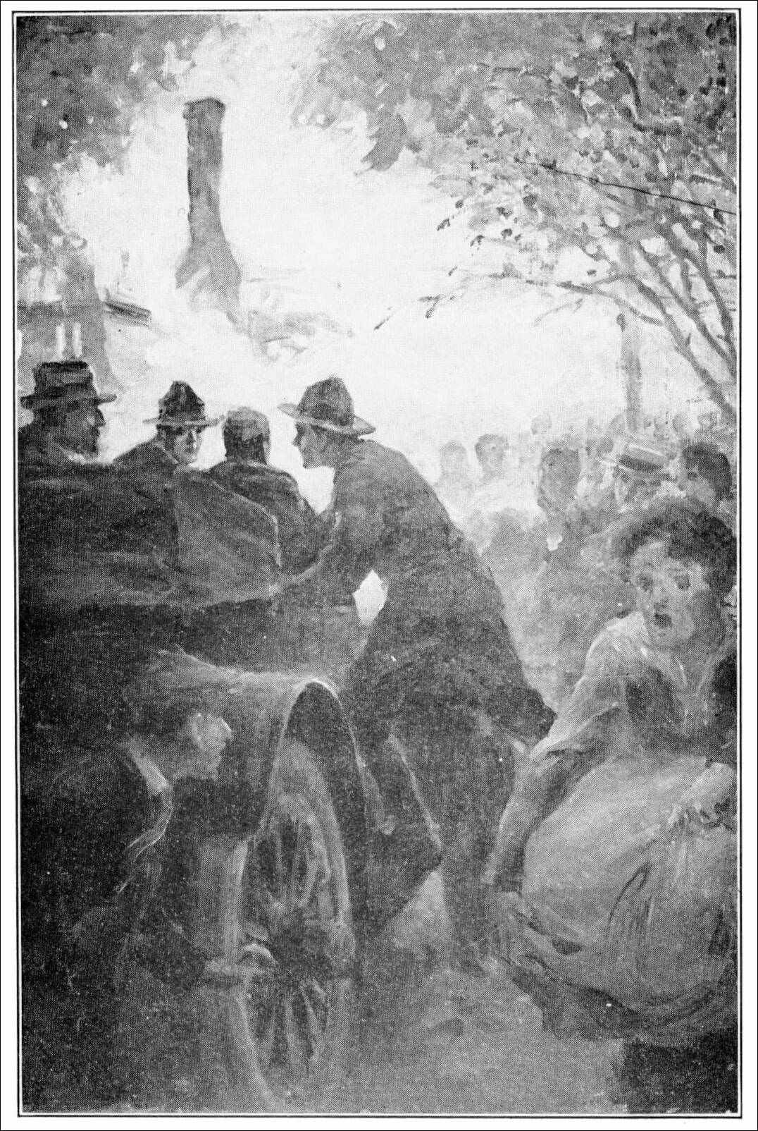 Luckily enough, he actually met the doctor in his own little touring car, so that he was back again before five minutes had passed. By that time quite a crowd had gathered. Sim and Andy and Tubby were employed in forcing the people to keep back, and this they did all the better because they had long been accustomed to handling excited crowds consumed either by a morbid curiosity, or by fear as in the case of a panic.