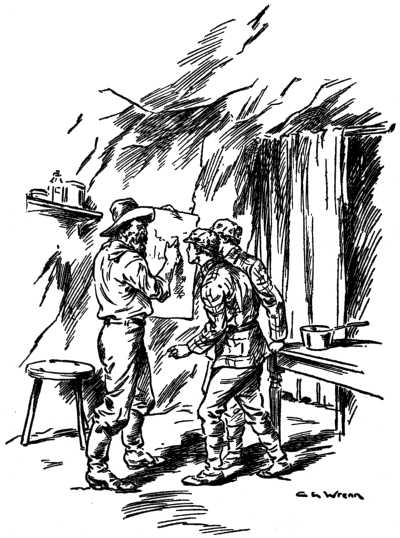 Following the discovery that the boys had gone, leaving Rufus tied and gagged, the fury of the two men knew no bounds. Had they discovered the boys then, there is no question but they would have killed them. But although they ranged the woods they did not discover any trace of the two lads, and being eager to get back to their crazy task of undermining the mountain, they soon gave up the search.