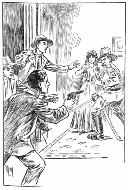 “Dead,” wailed Hank. “He fell, shot in[308] the back, as he was running toward me.”