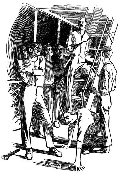 In the midst of the wreckage sprawled the unlucky bully, his features bedaubed with black. Through this mask his look of puzzled rage at his defeat came so comically that Ned and Herc could not restrain themselves, but, even in the face of the disaster to the store stove, burst into uncontrollable fits of laughter. In the meantime some one hurled a bucket of water on the coals, and the bully was drenched.
